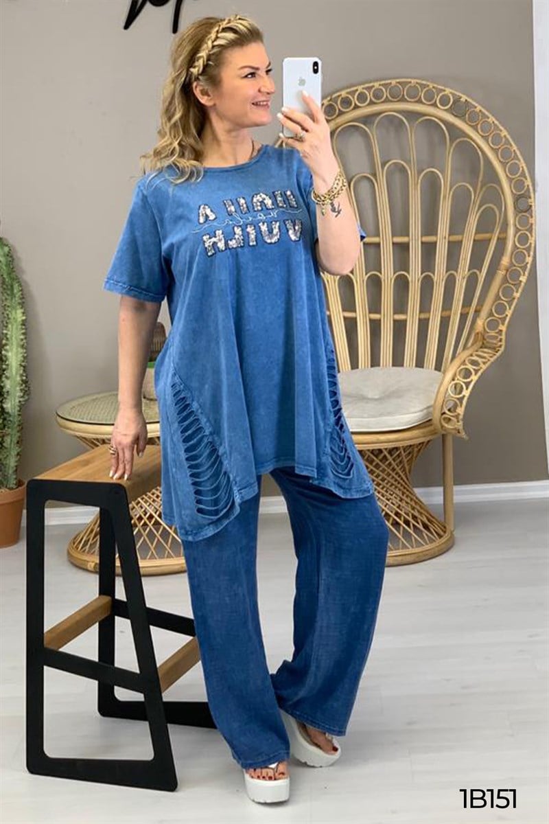 PUL DETAY EŞOFMAN TAKIMI OMUZDAN AŞAĞI ÜST 85 CM BELDEN AŞAĞI ALT 105 CM