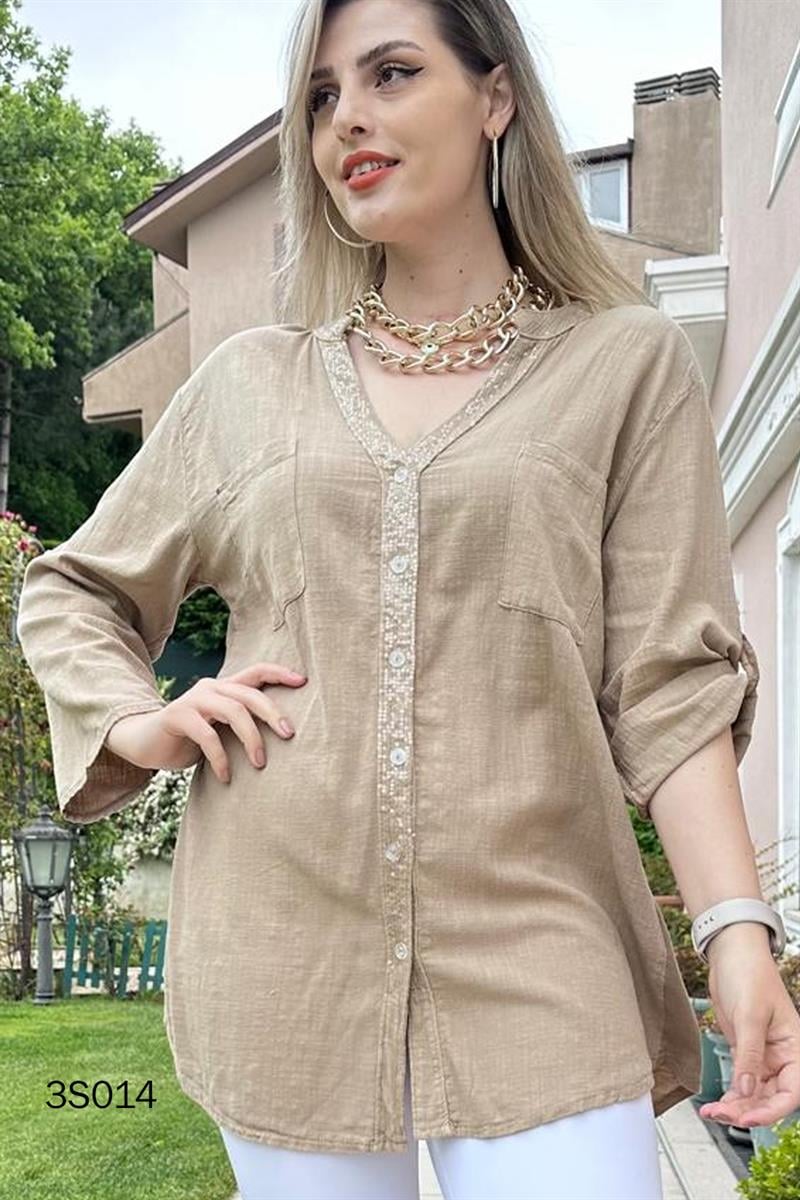 PUL DETAY KETEN GÖMLEK OMUZDAN AŞAĞI 70 CM