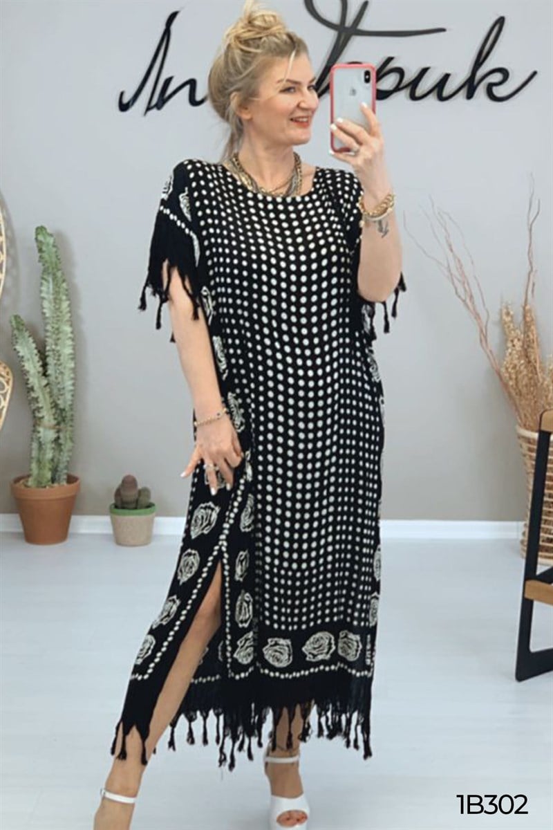 PÜSKÜL DETAY ELBİSE OMUZDAN AŞAĞI 130 CM