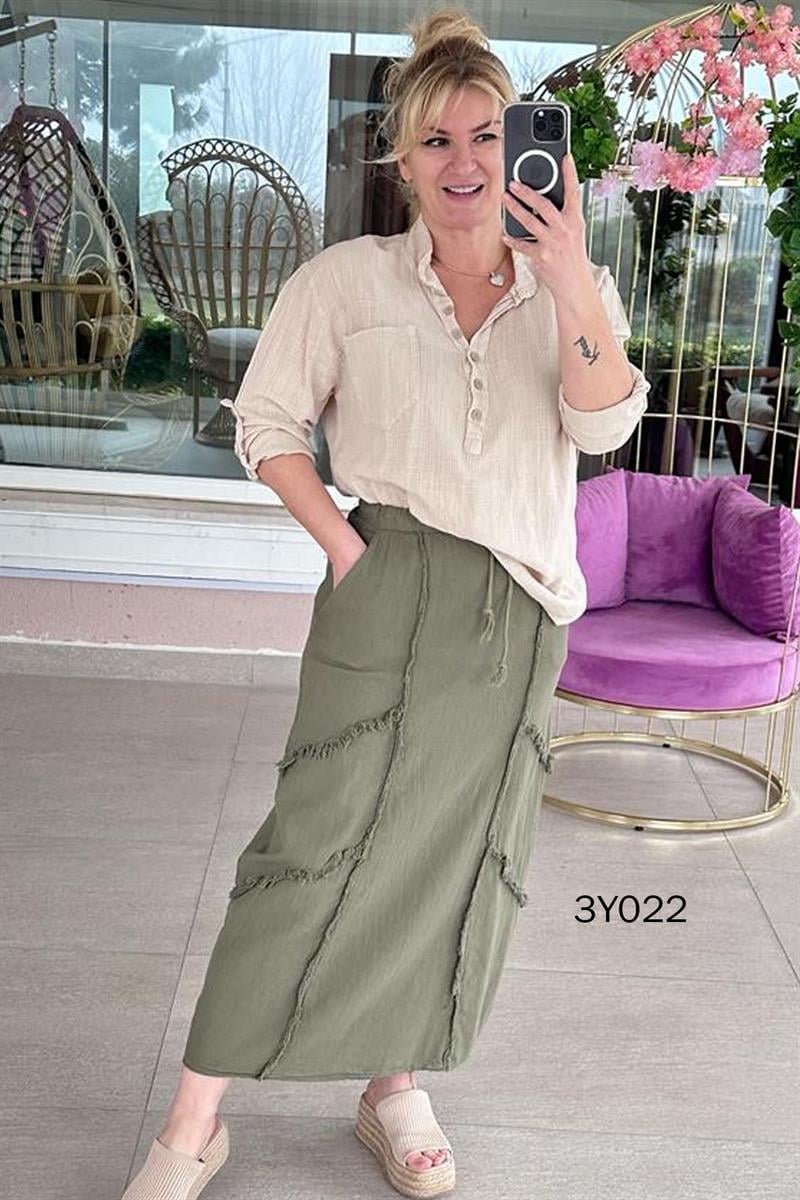 PÜSKÜLLÜ KETEN ETEK BELDEN AŞAĞI 90 CM
