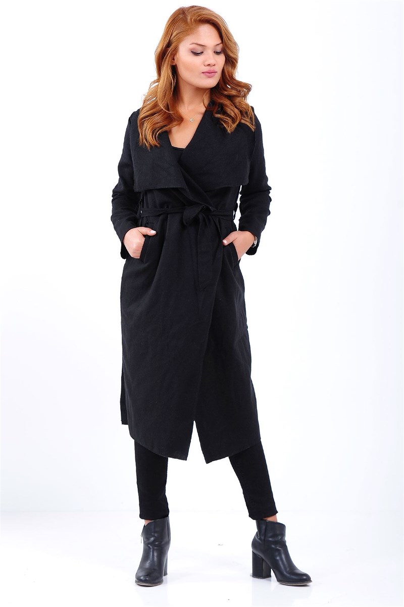 Şal Yaka Kuşaklı Kaşe Kaban (8KISG0007004)