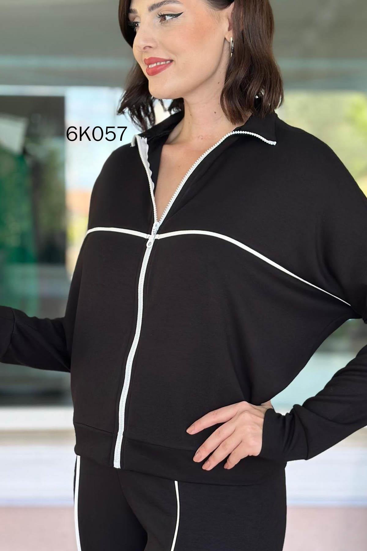 ŞERİT DETAY FERMUARLI MODAL TAKIM ÜST OMUZDAN AŞAĞI 59 CM ALT BELDEN AŞAĞI 103 CM
