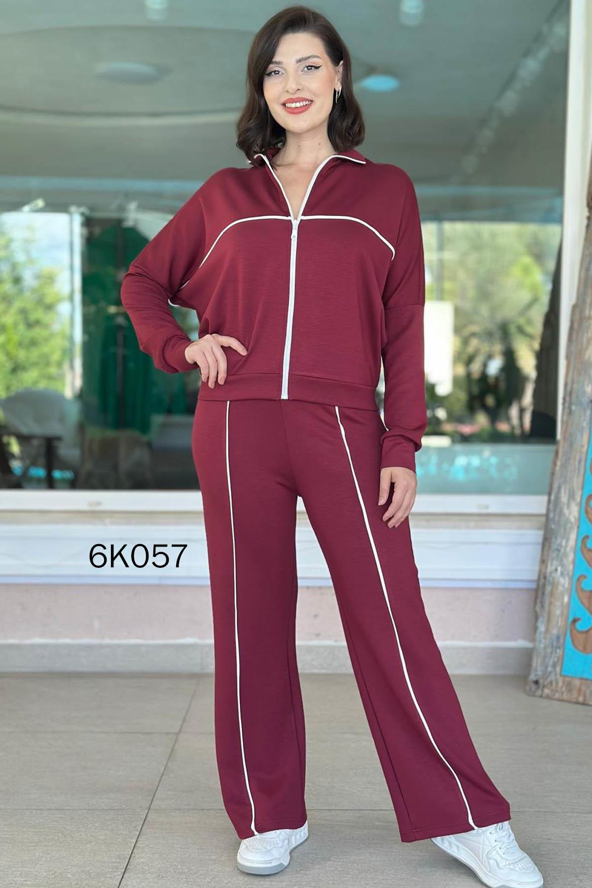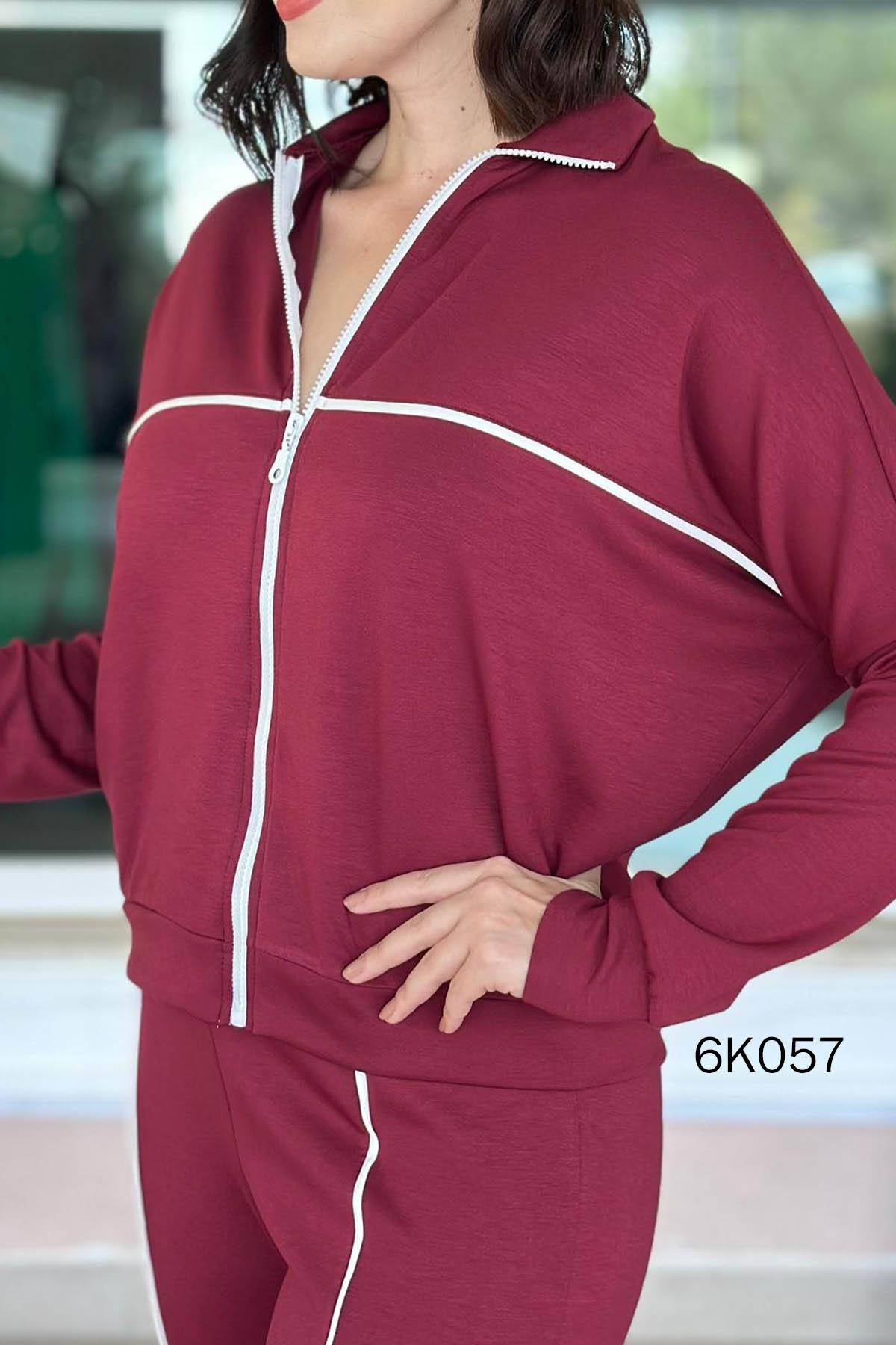 ŞERİT DETAY FERMUARLI MODAL TAKIM ÜST OMUZDAN AŞAĞI 59 CM ALT BELDEN AŞAĞI 103 CM