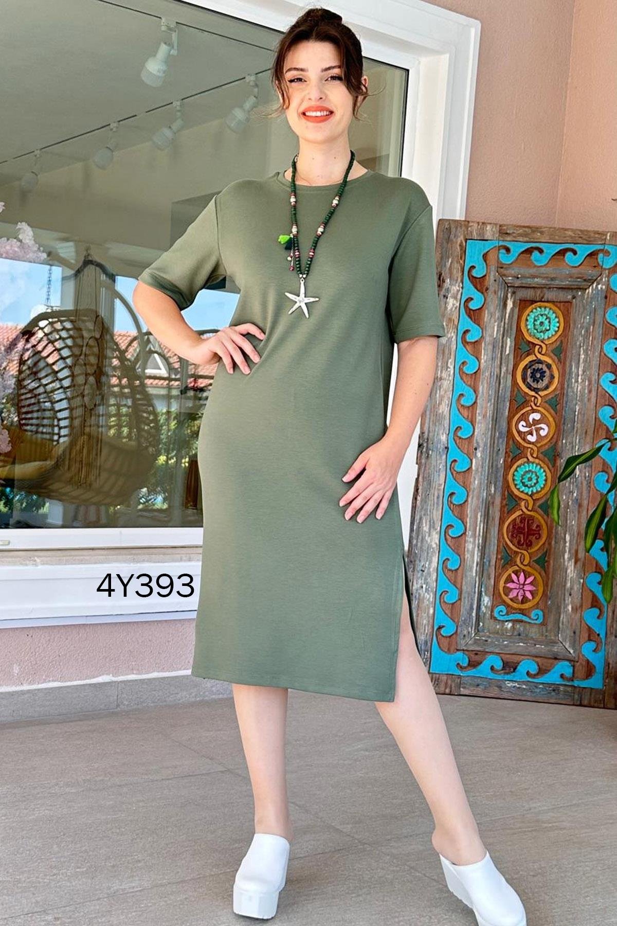 KISA KOL BİSİKLET YAKA MODAL KUMAŞ ELBİSE OMUZDAN AŞAĞI 115 CM
