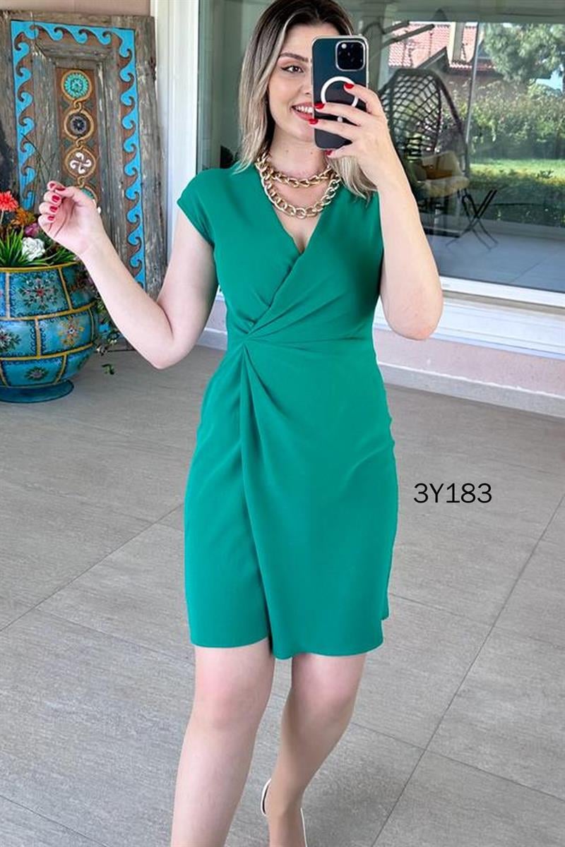 SIFIR KOL BÜZGÜLÜ KREP ELBİSE OMUZDAN AŞAĞI 95 CM