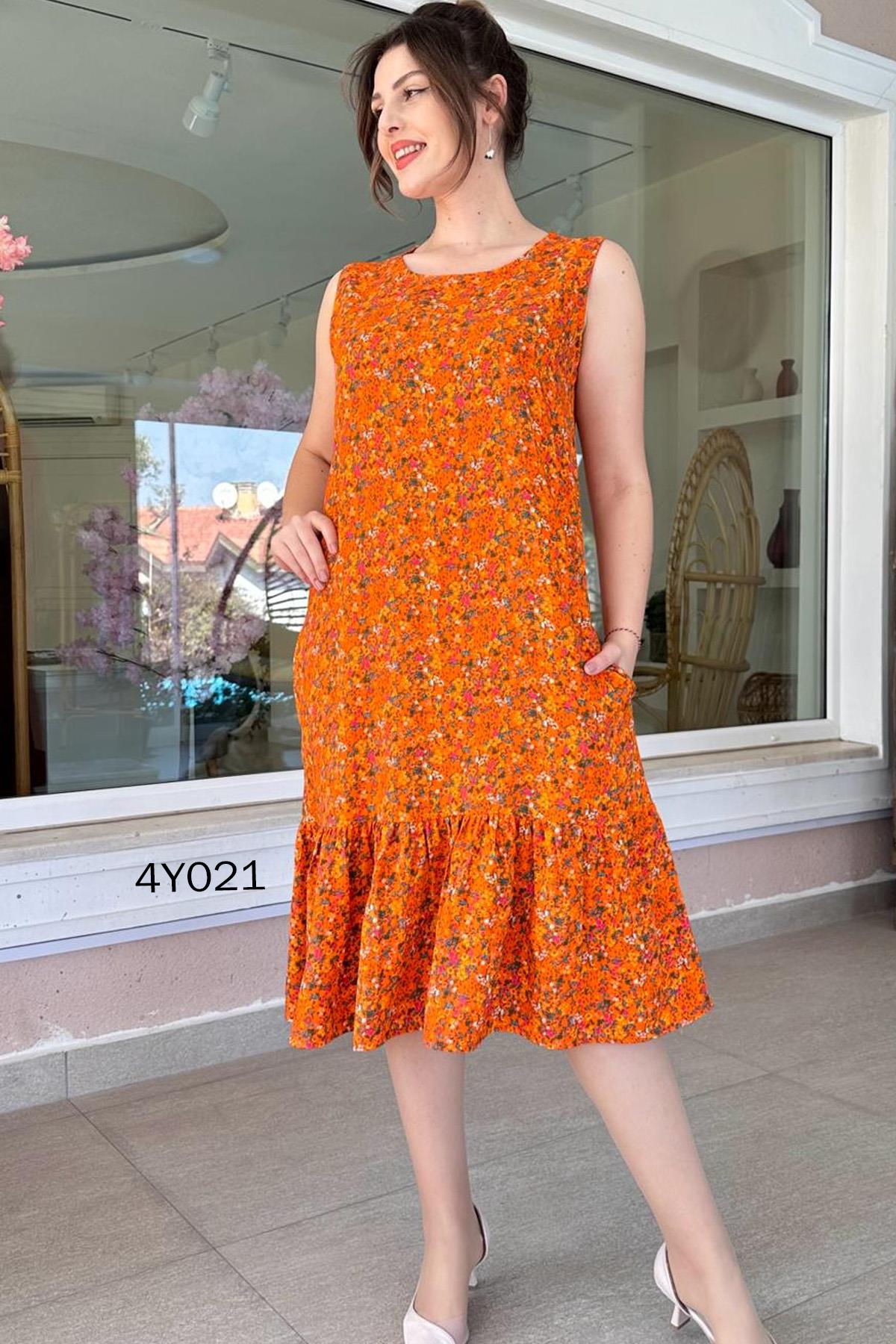 SIFIR KOL DOKUMA VİSKON ELBİSE OMUZDAN AŞAĞI 95 CM