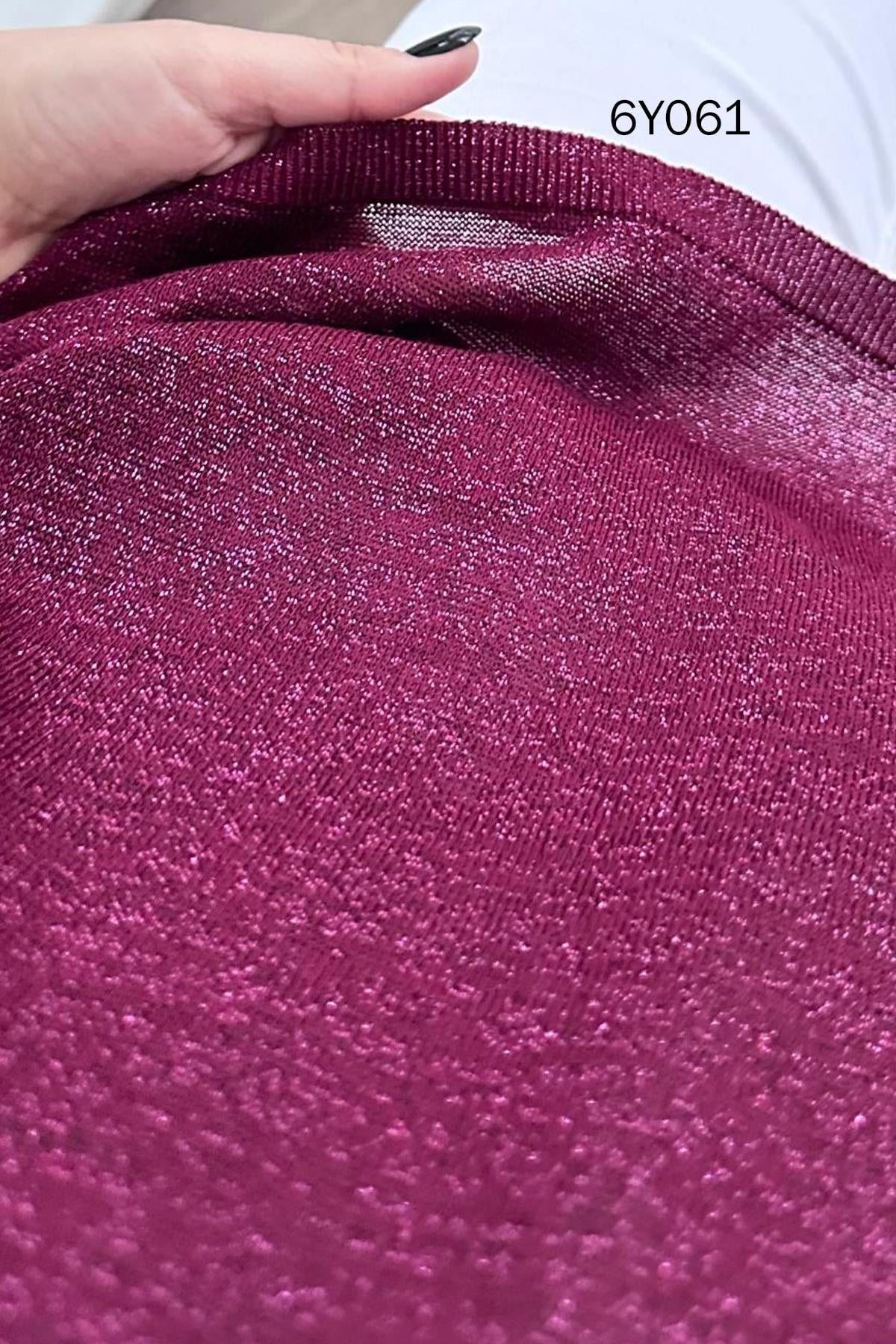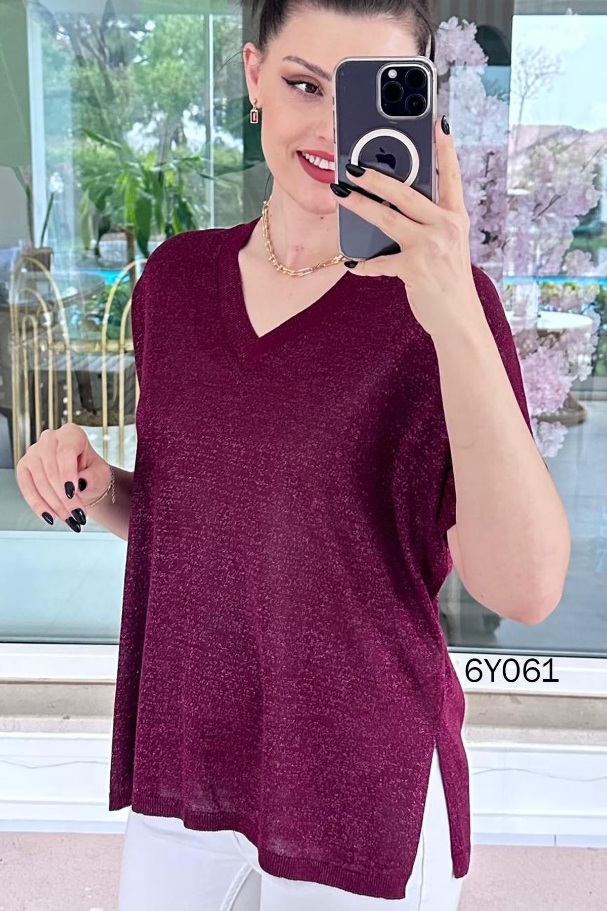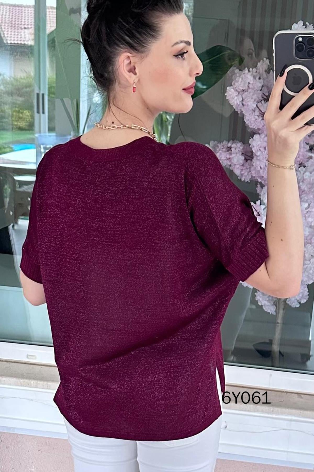 Simli V Yaka Merserize Triko Bluz (6Y0612939096)