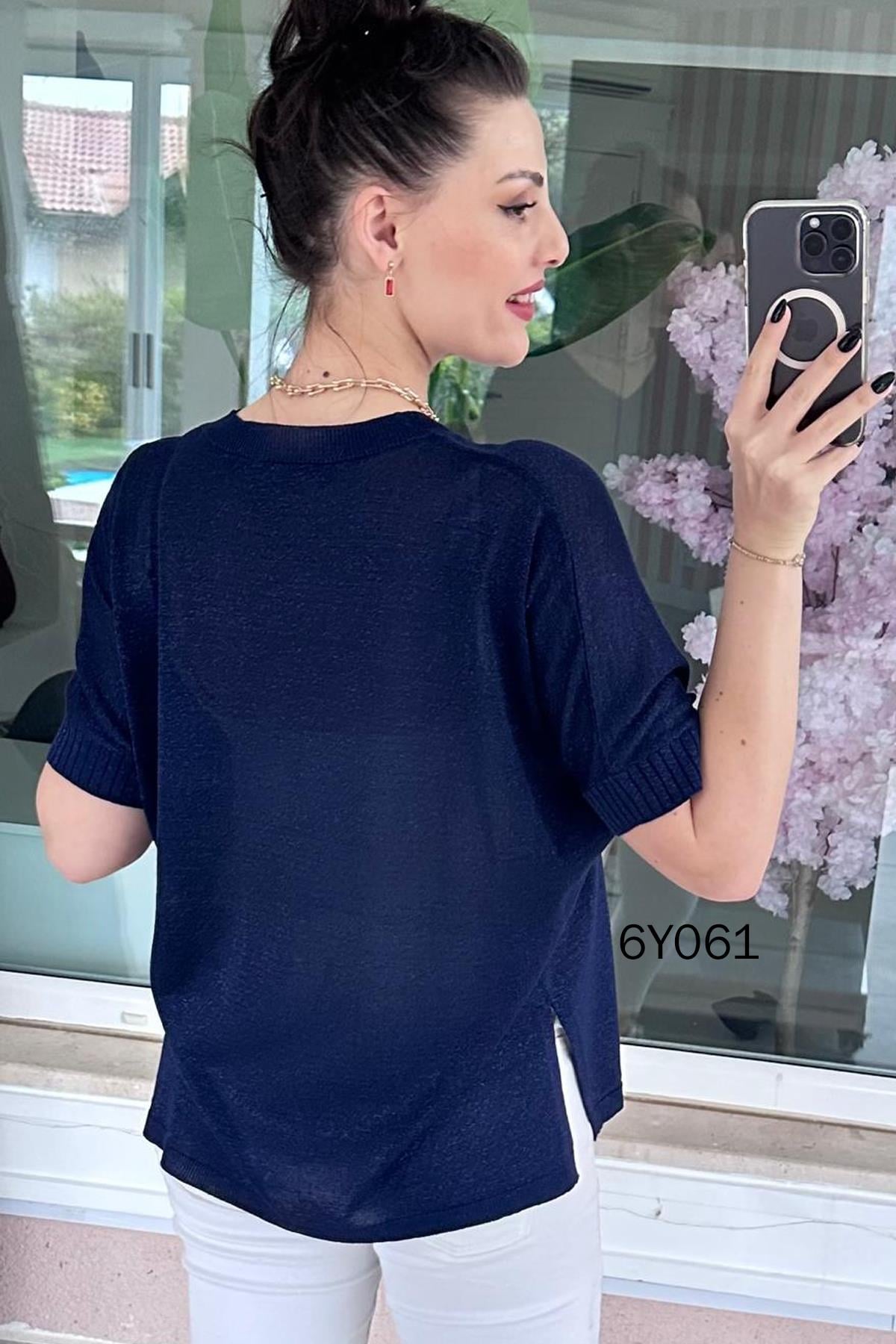 Simli V Yaka Merserize Triko Bluz (6Y0612939A20)