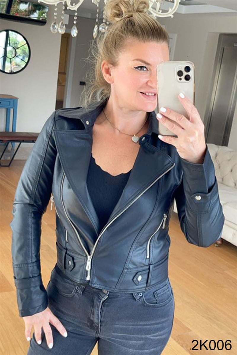 SUNİ DERİ FERMUARLI CEKET OMUZDAN AŞAĞI 52 CM