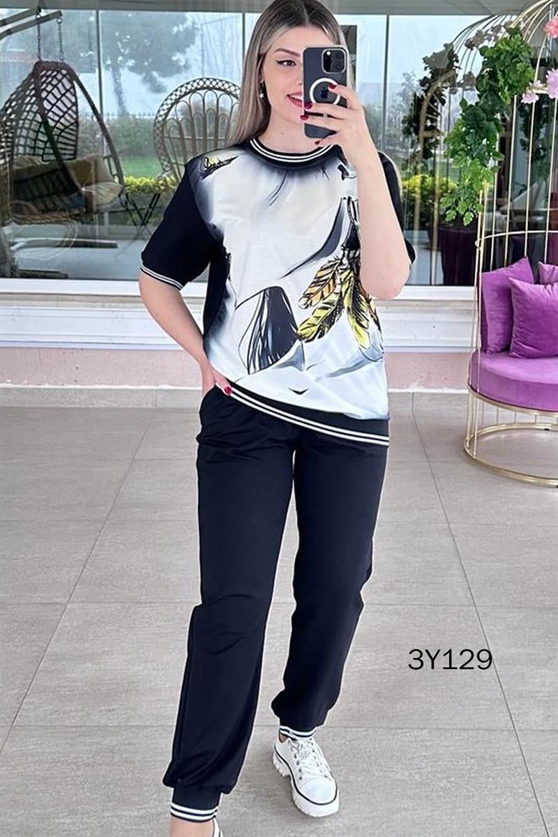 Taş Baskılı Kısa Kol 2 li Eşofman Takımı