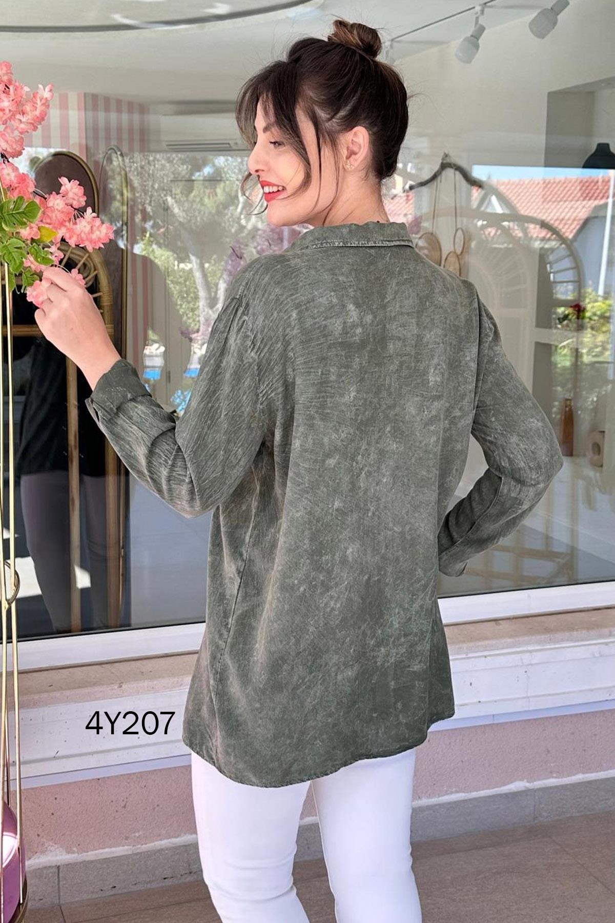 TAŞ İŞLEMELİ FERMUARLI GÖMLEK OMUZDAN AŞAĞI 76 CM