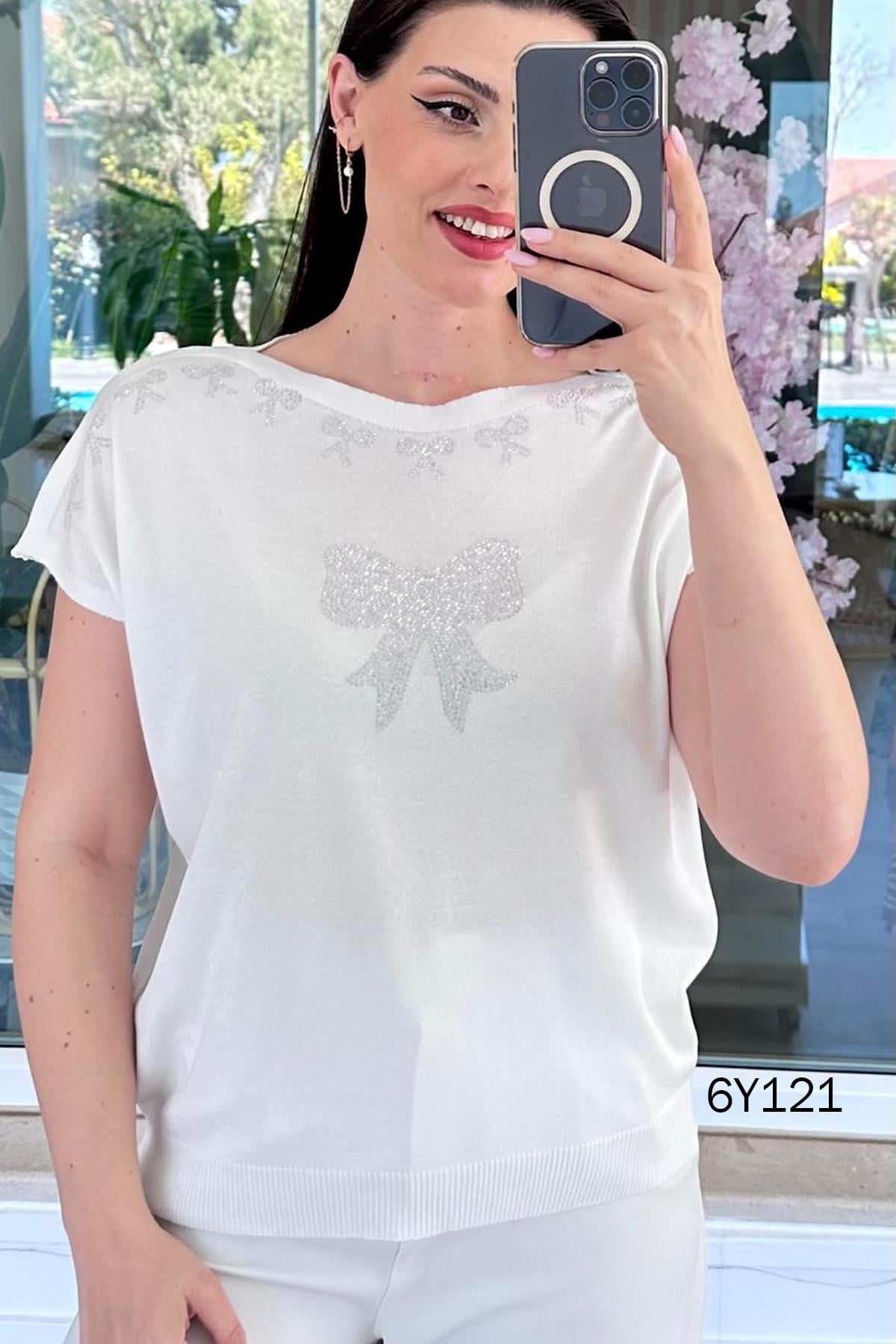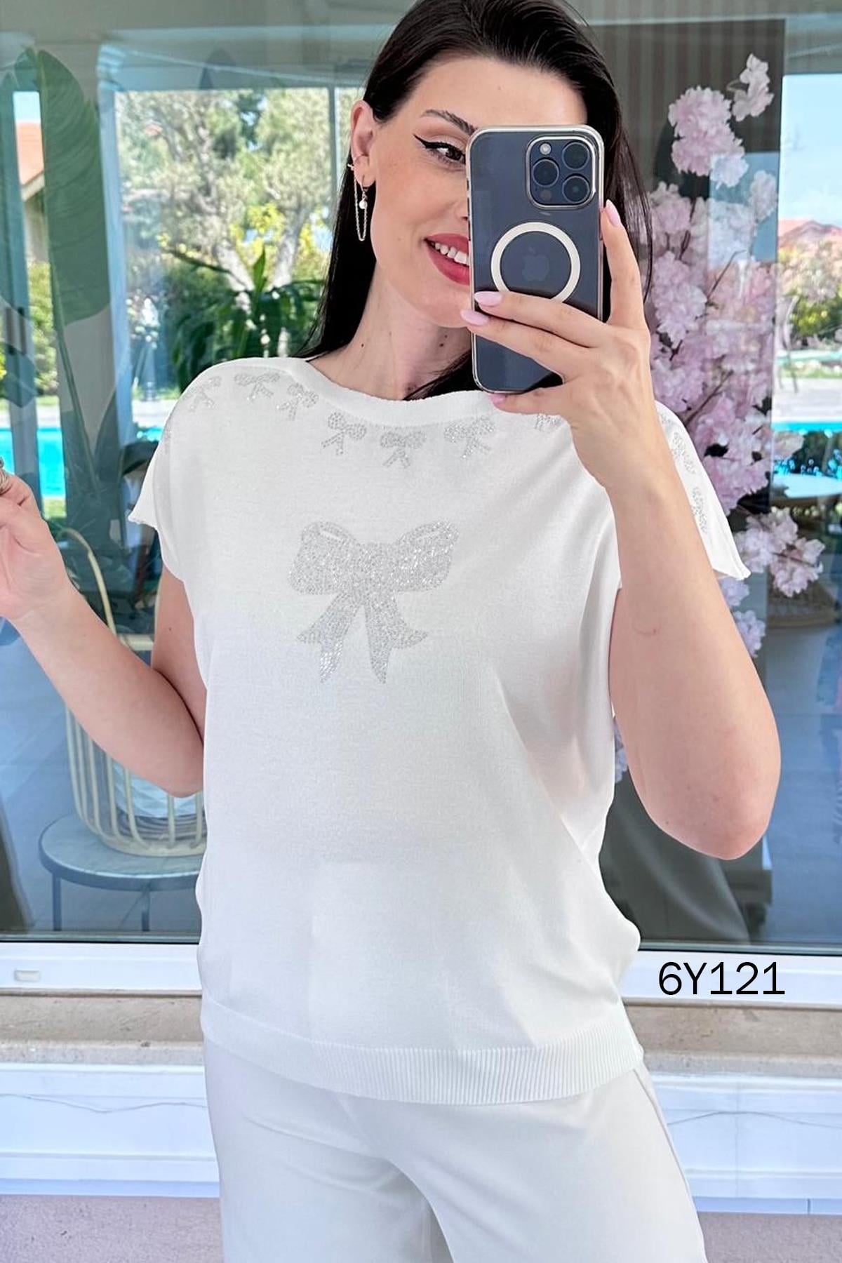 Taş İşlemeli Merserize Bluz (6Y1215935118)
