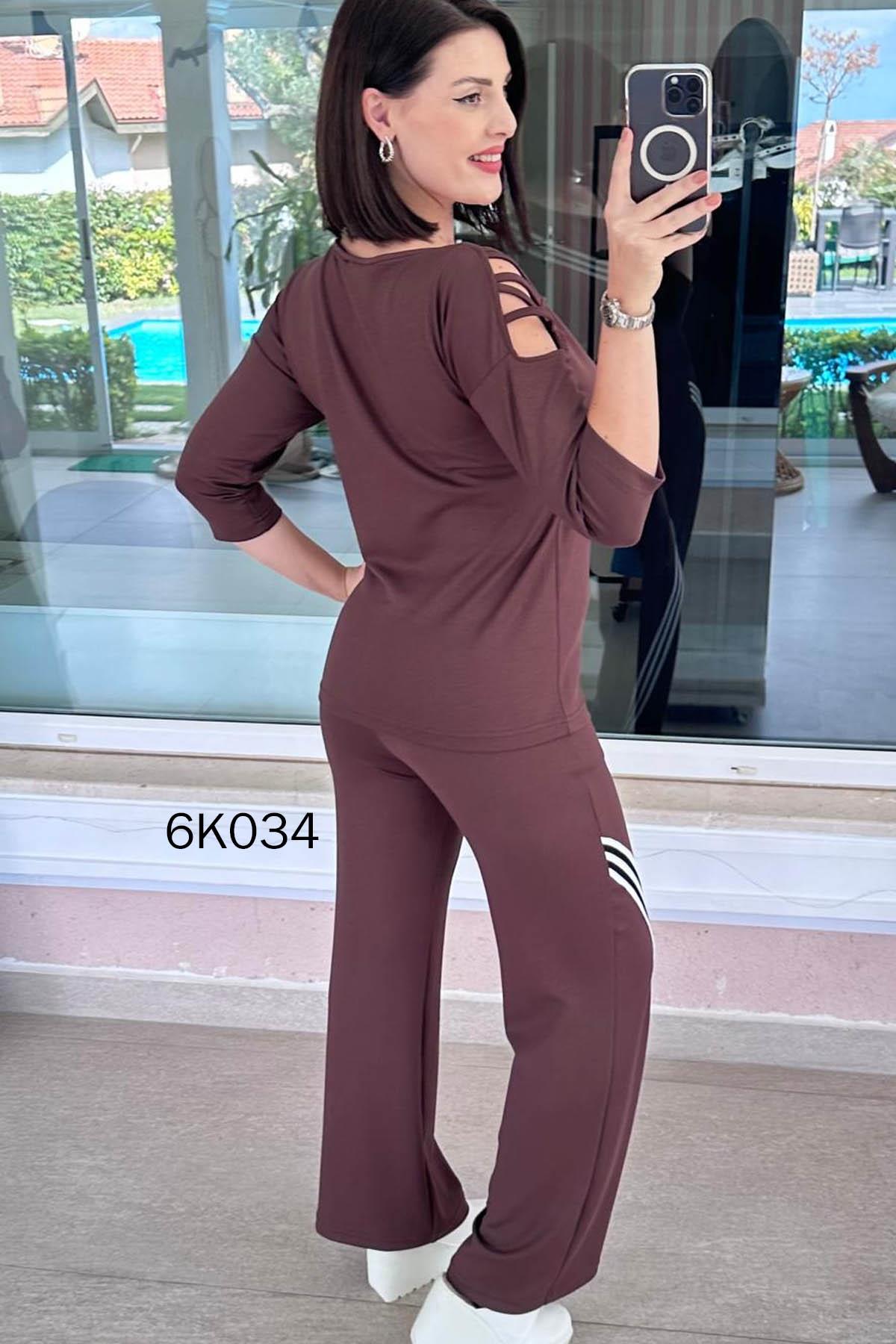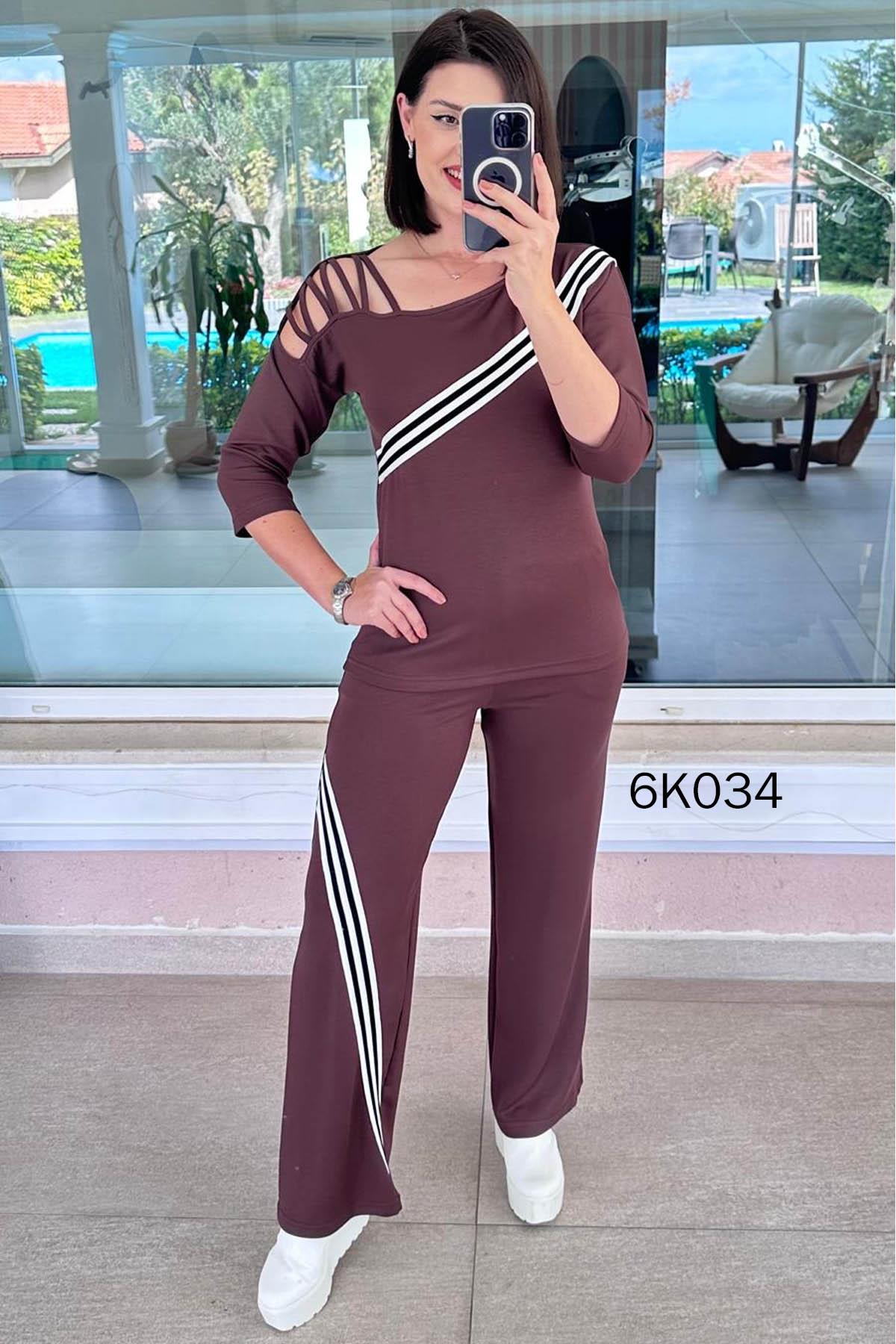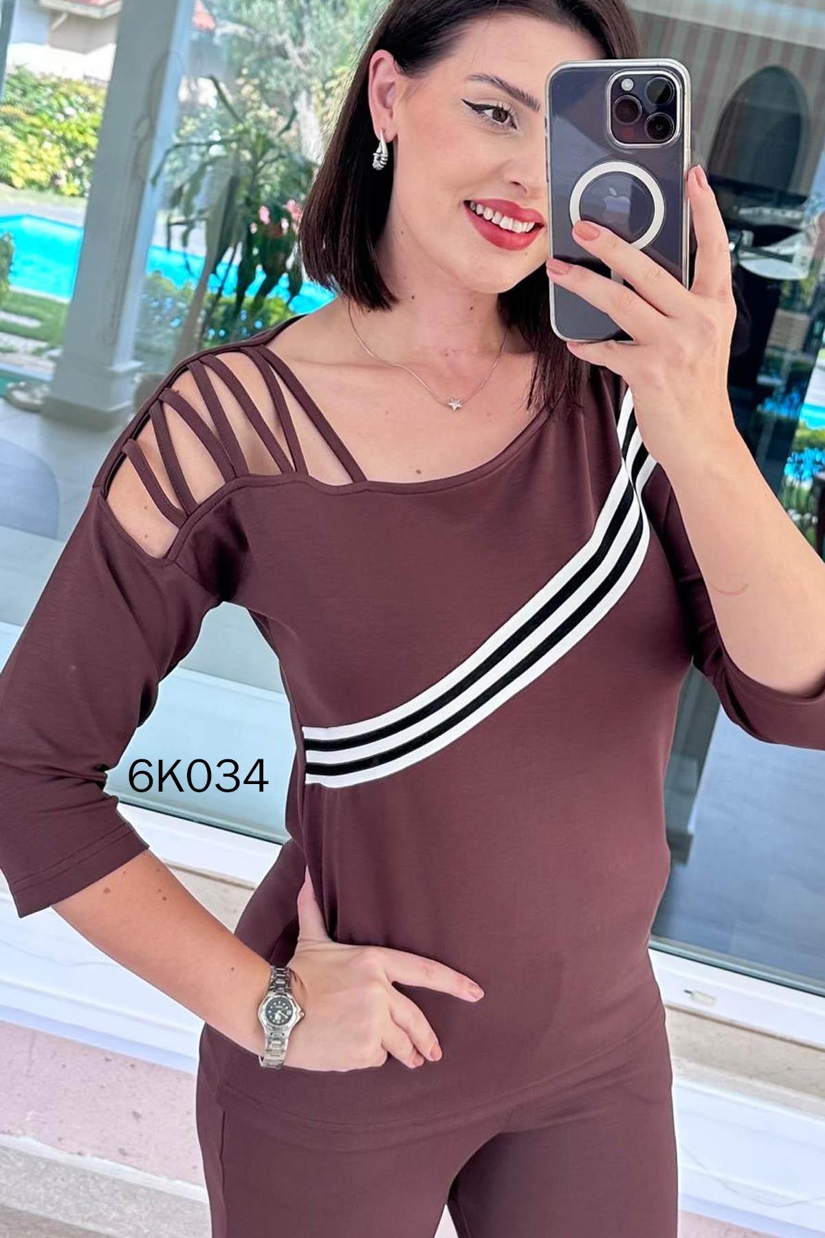 Tek Omuz Dekolte Şeritli Modal Takım