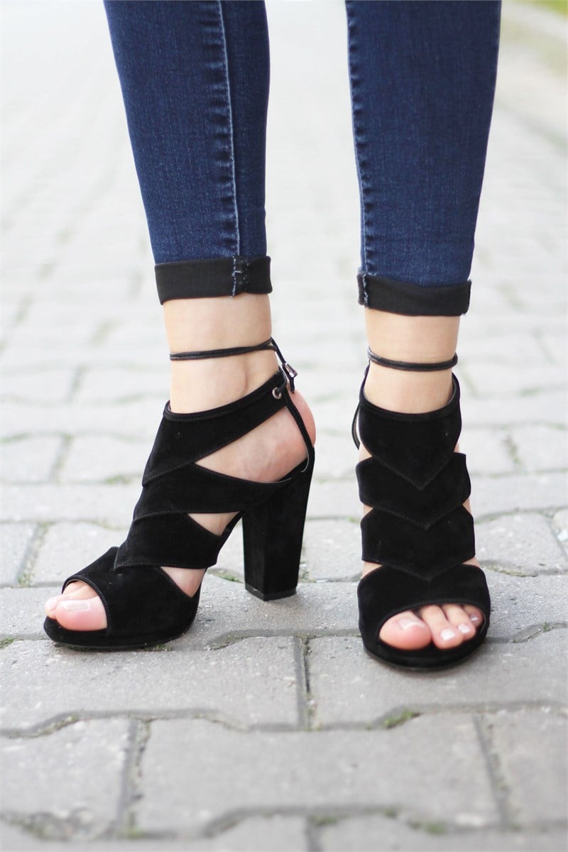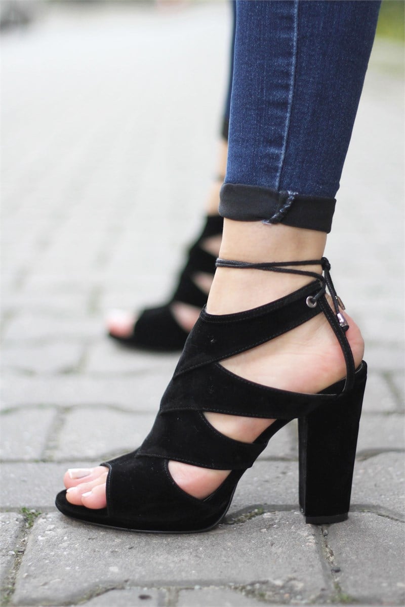Suni Deri Süet İp Detaylı Ökçe : 11 CM