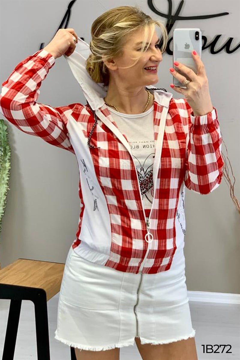 TSHİRT HEDİYELİ FERMUARLI KAPŞONLU GOFRE KUMAŞ GÖMLEK OMUZDAN AŞAĞI 65 CM