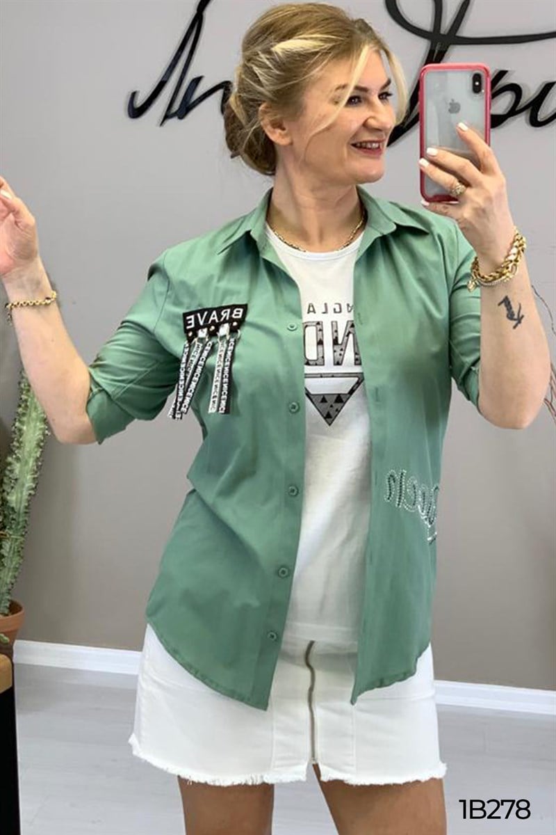TSHİRT HEDİYELİ TAŞ DETAY GOFRE KUMAŞ GÖMLEK OMUZDAN AŞAĞI 75 CM