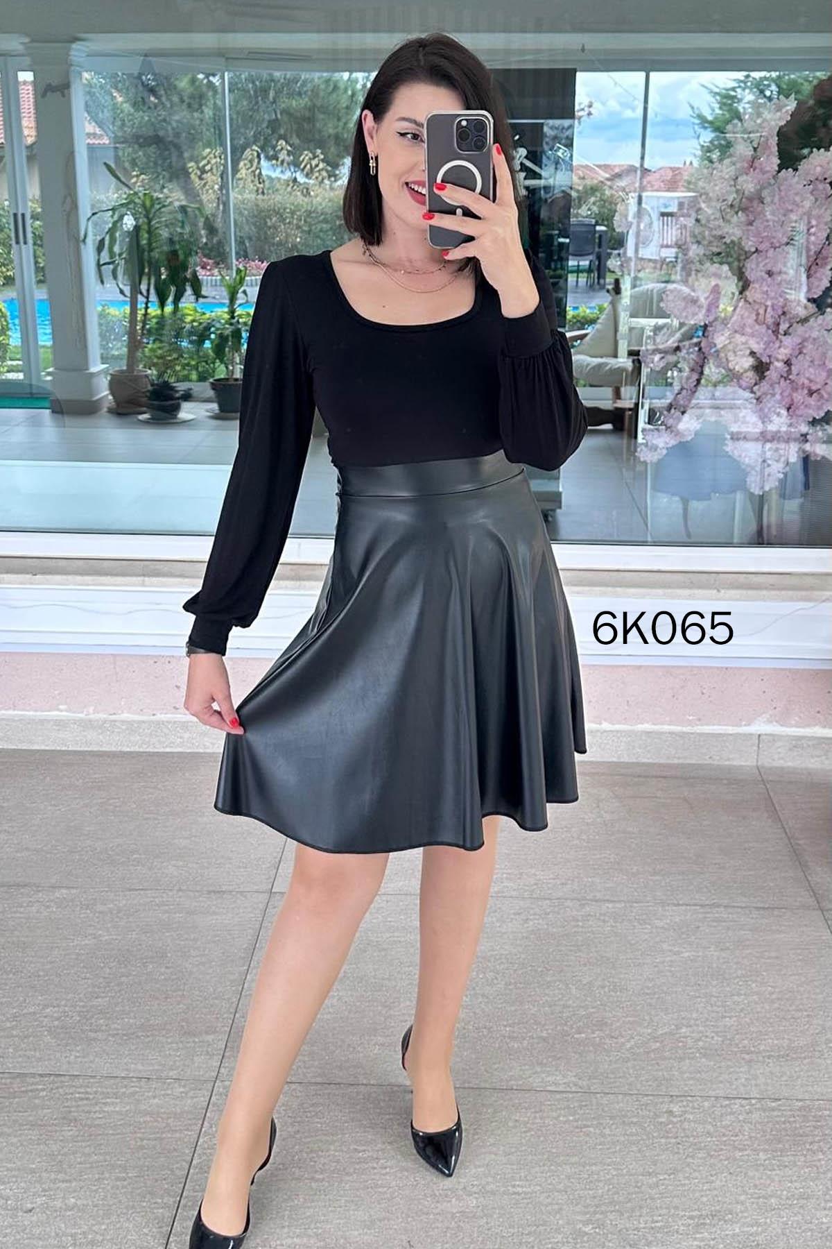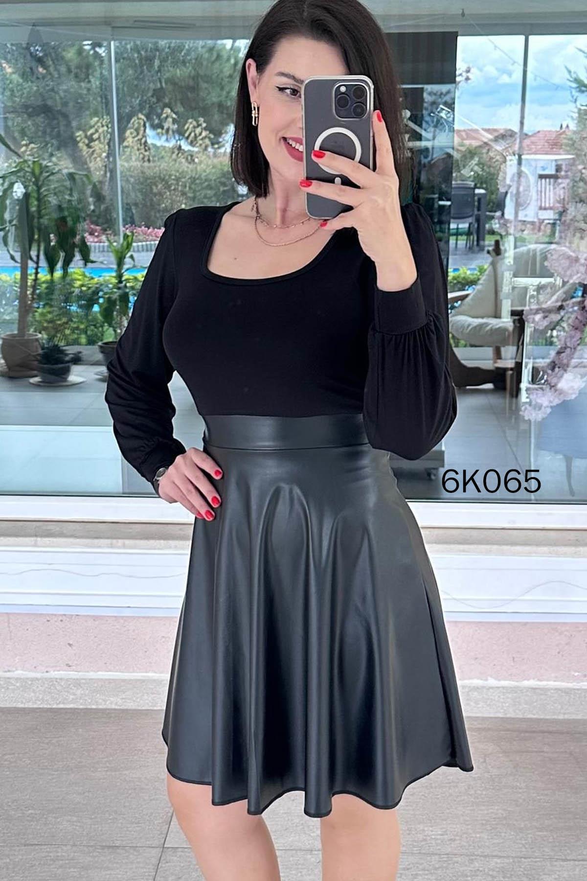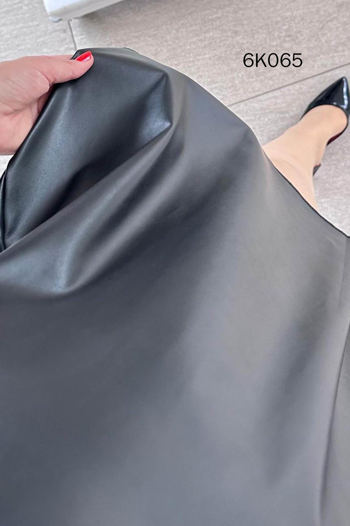 ÜSTÜ VİSKON ETEĞİ DERİ ELBİSE OMUZDAN AŞAĞI 96 CM