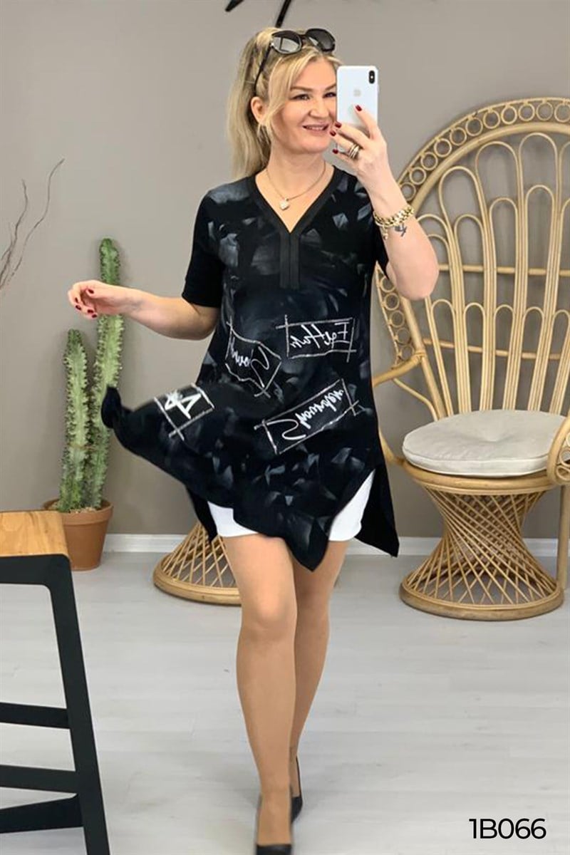 V YAKA TAŞ DETAY TUNİK OMUZDAN AŞAĞI 83 CM