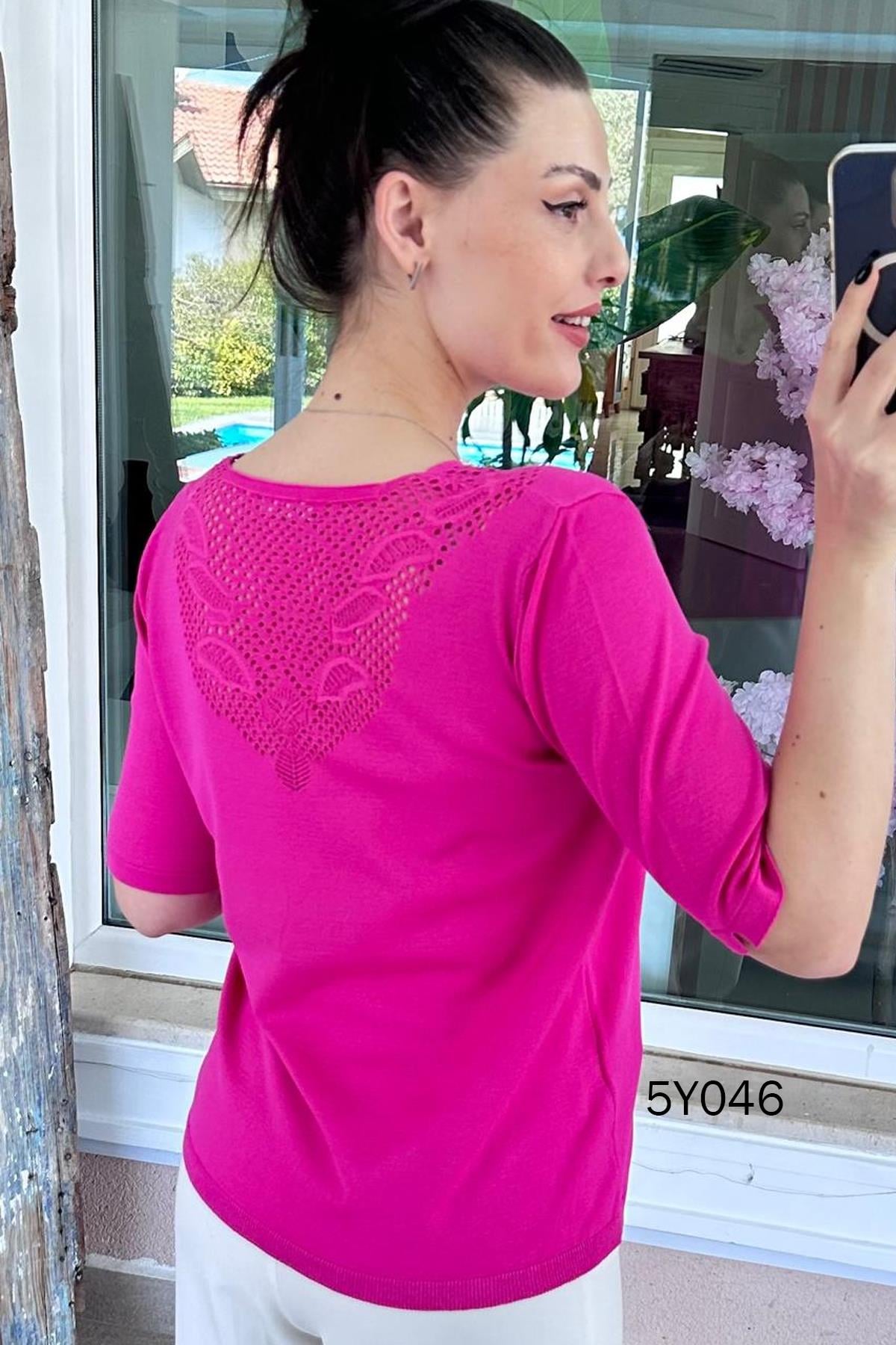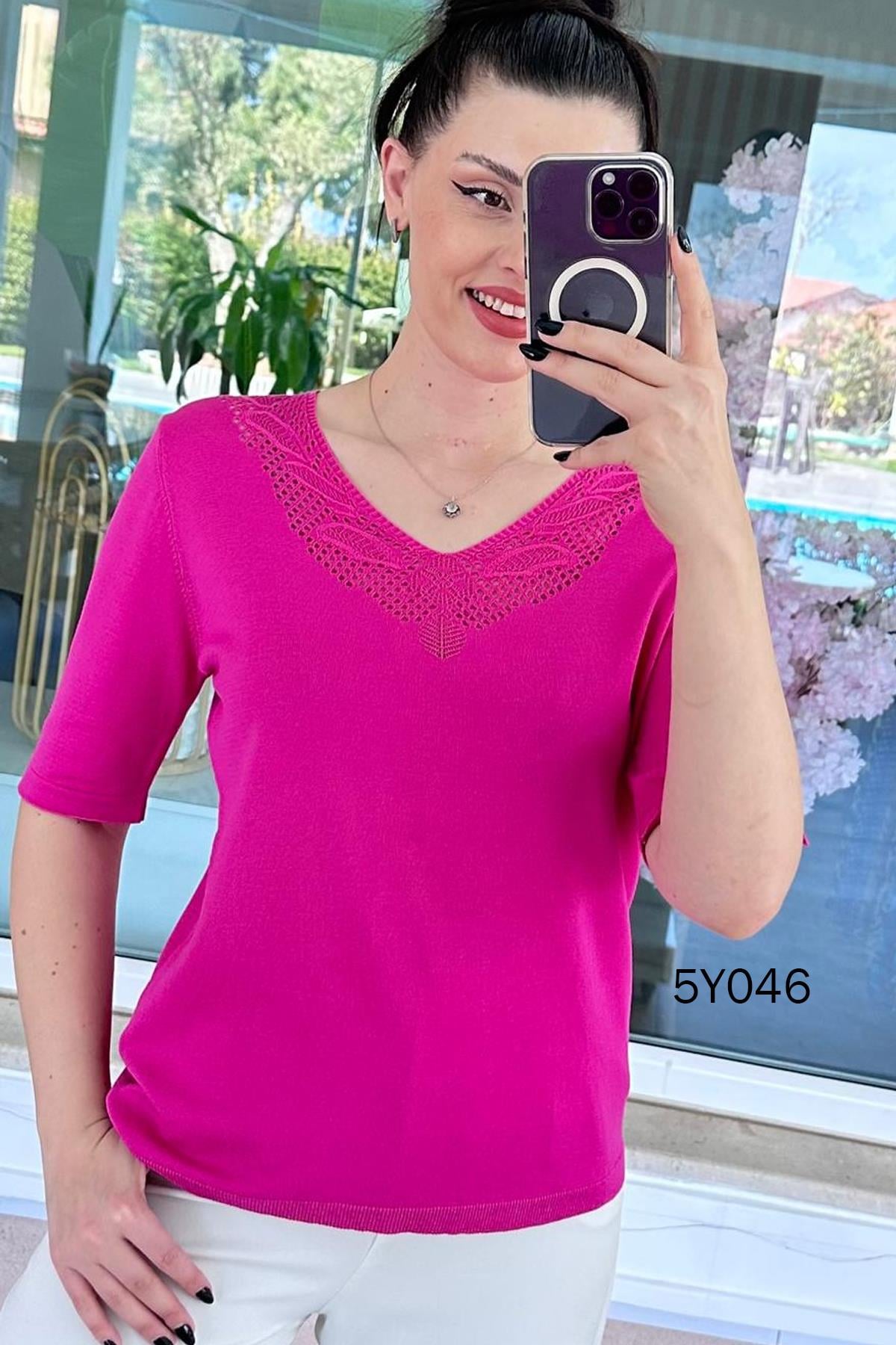 V Yaka Ajurlu Merserize Triko Bluz (5Y0462835013)