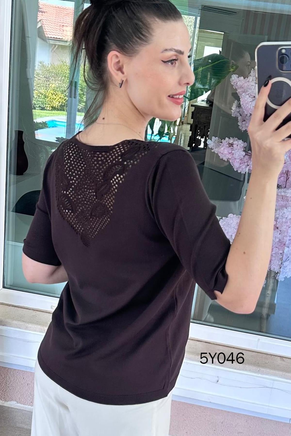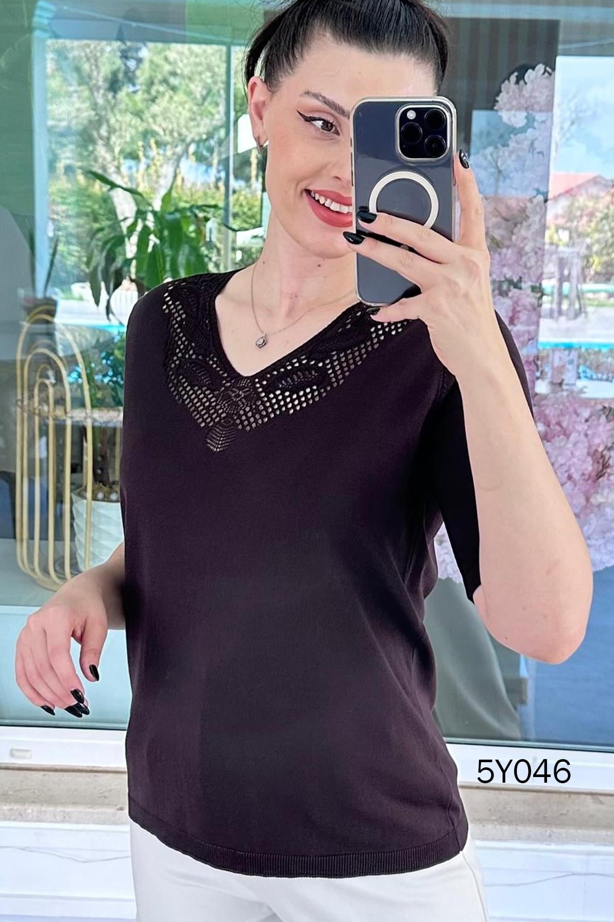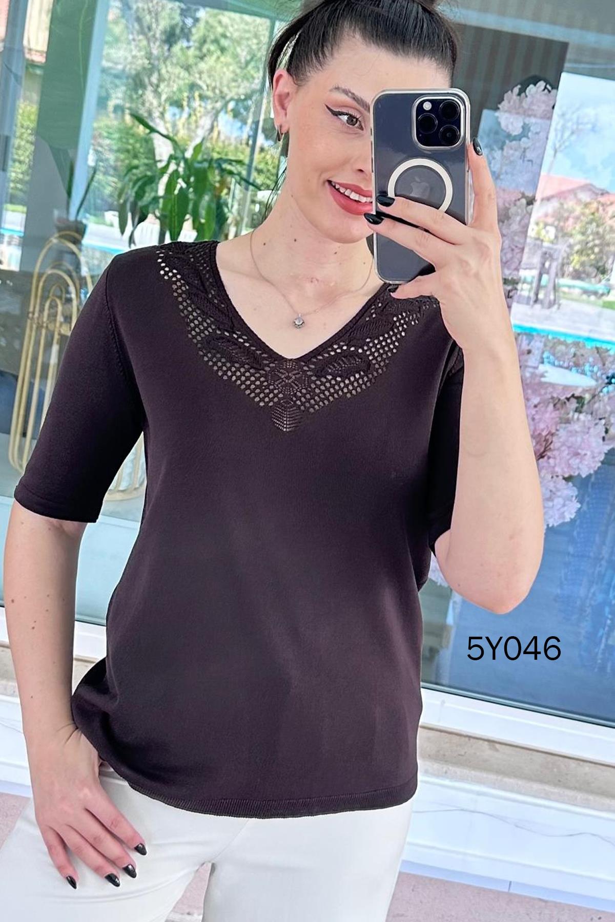 V Yaka Ajurlu Merserize Triko Bluz (5Y0462835556)