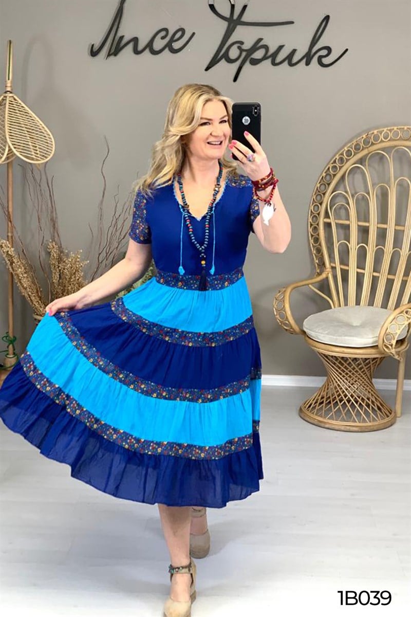 V YAKA ÇİÇEK DESENLİ ELBİSE OMUZDAN AŞAĞI 109 CM