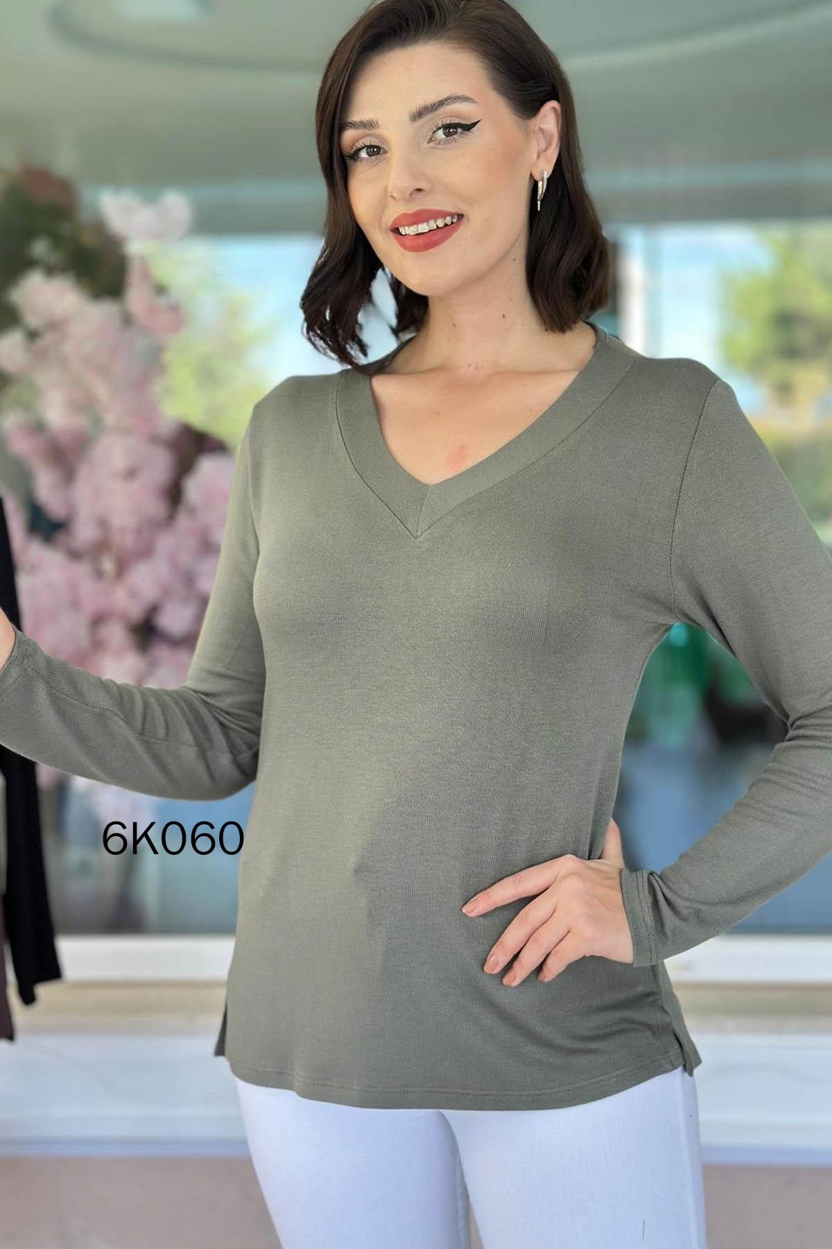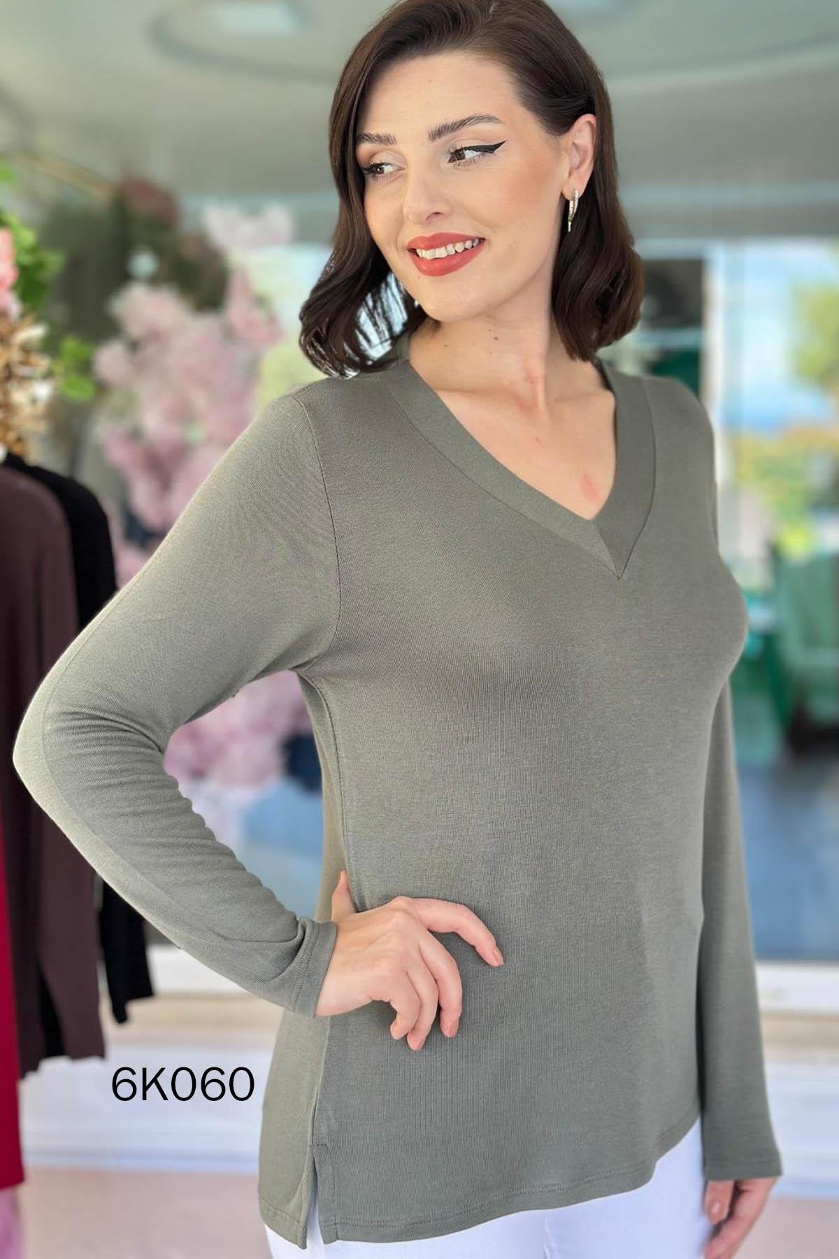 V YAKA ÇİLEK KUMAŞ BLUZ OMUZDAN AŞAĞI 64 CM