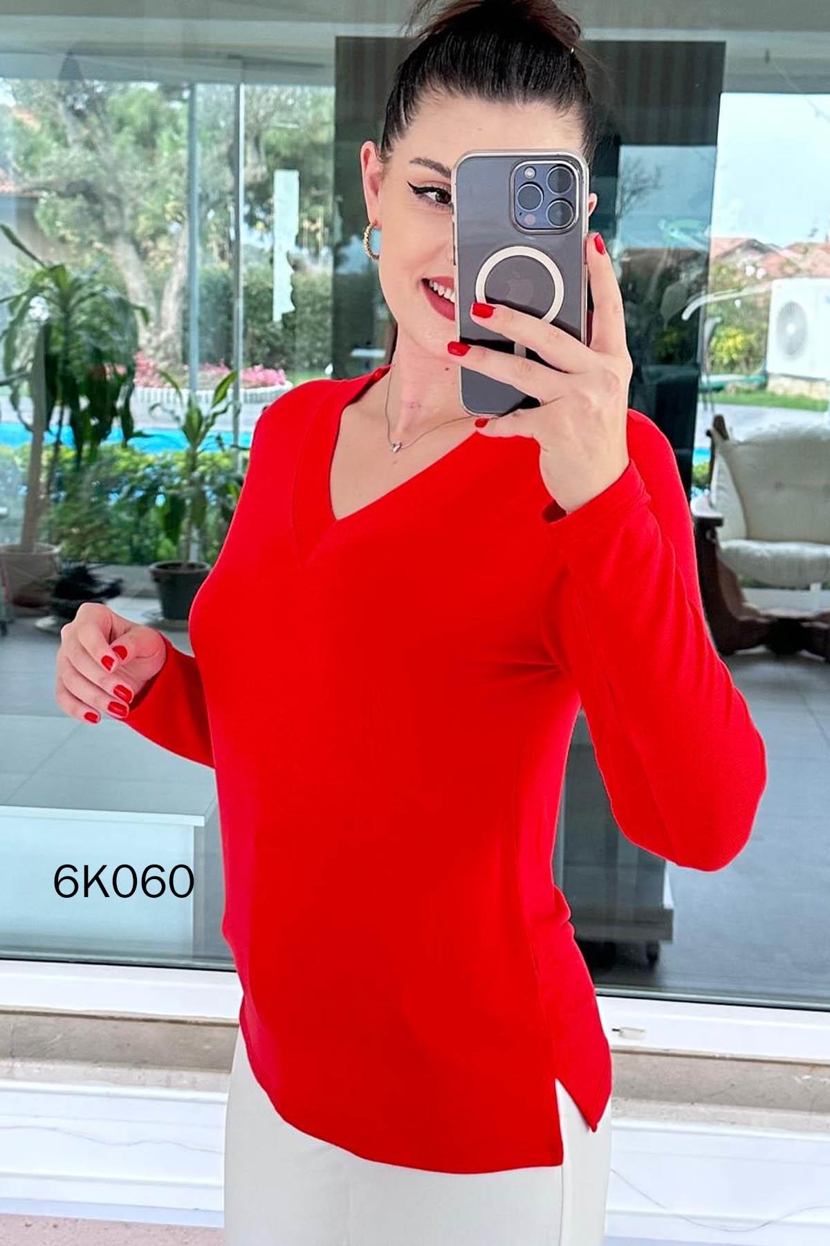 V YAKA ÇİLEK KUMAŞ BLUZ OMUZDAN AŞAĞI 64 CM