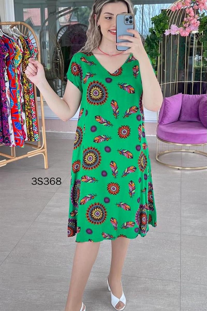V YAKA DESENLİ VİSKON ELBİSE BOYU DESENE VE BEDENE GÖRE 106 CM 110 CM ARASI DEĞİŞMEKTEDİR
