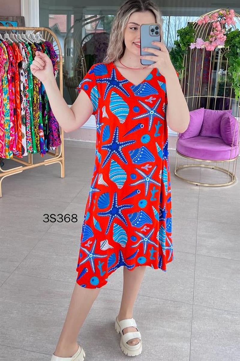 V YAKA DESENLİ VİSKON ELBİSE BOYU DESENE VE BEDENE GÖRE 106 CM 110 CM ARASI DEĞİŞMEKTEDİR