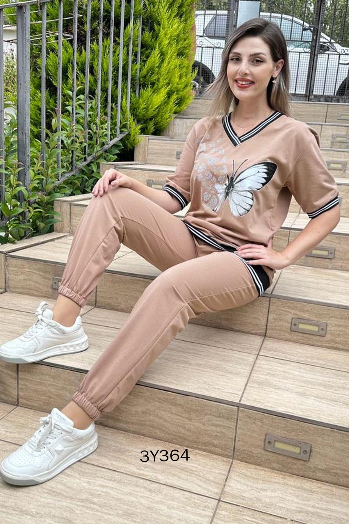 V YAKA KELEBEK TAŞ BASKILI 2 Lİ EŞOFMAN TAKIMI OMUZDAN AŞAĞI ÜST 70 CM BELDEN AŞAĞI ALT 100 CM