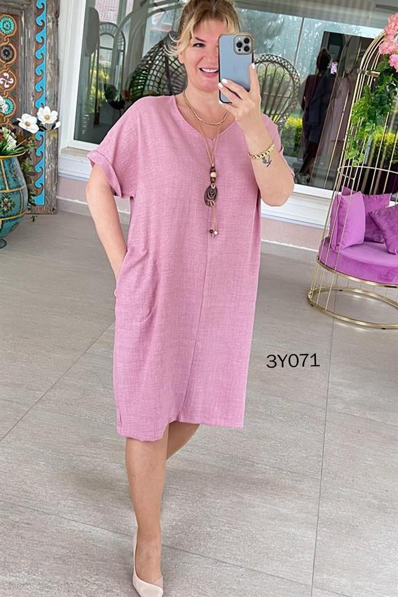 V YAKA KETEN AEROBİN ELBİSE OMUZDAN AŞAĞI 104 CM