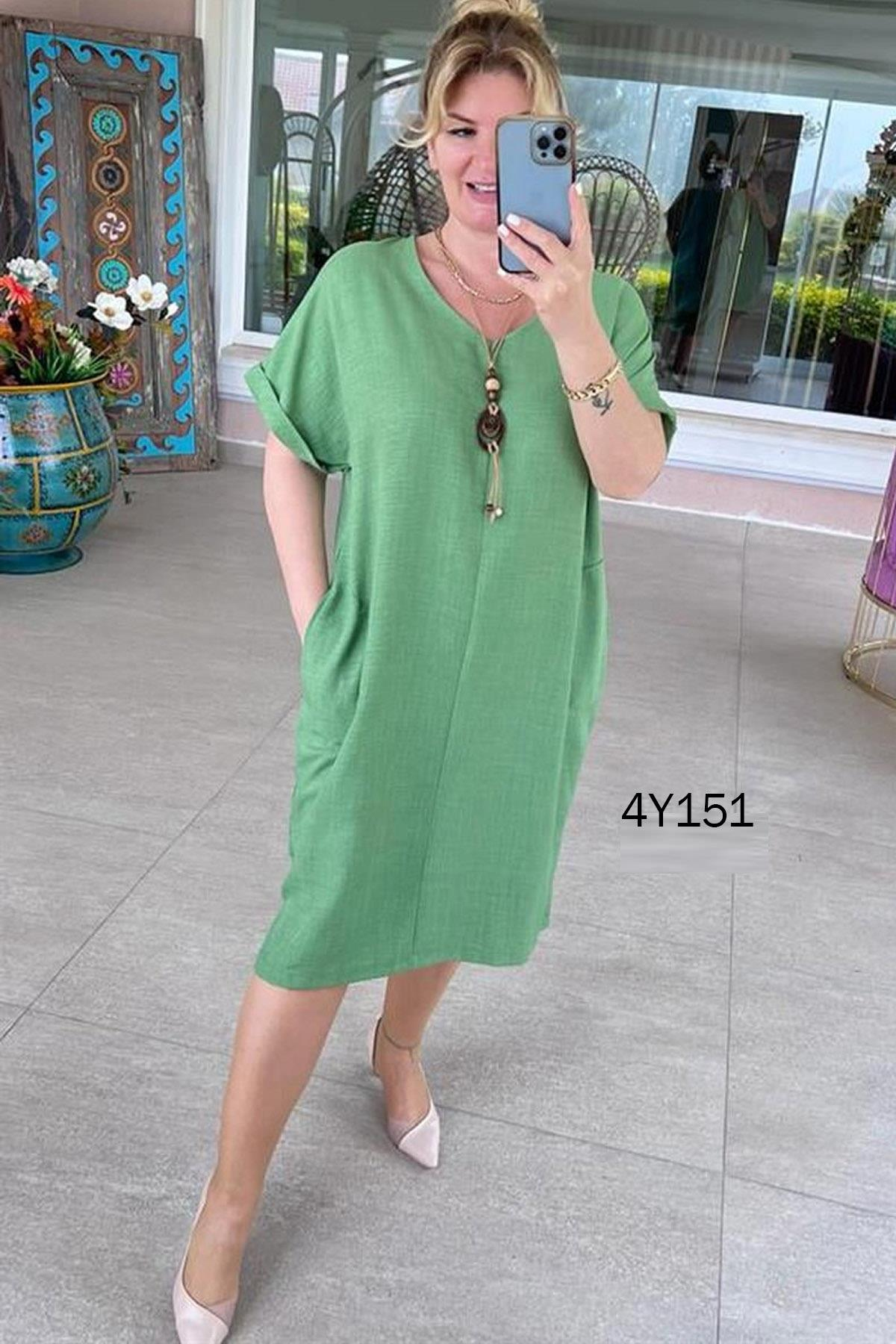 V YAKA KETEN AEROBİN KOLYELİ ELBİSE OMUZDAN AŞAĞI 104 CM