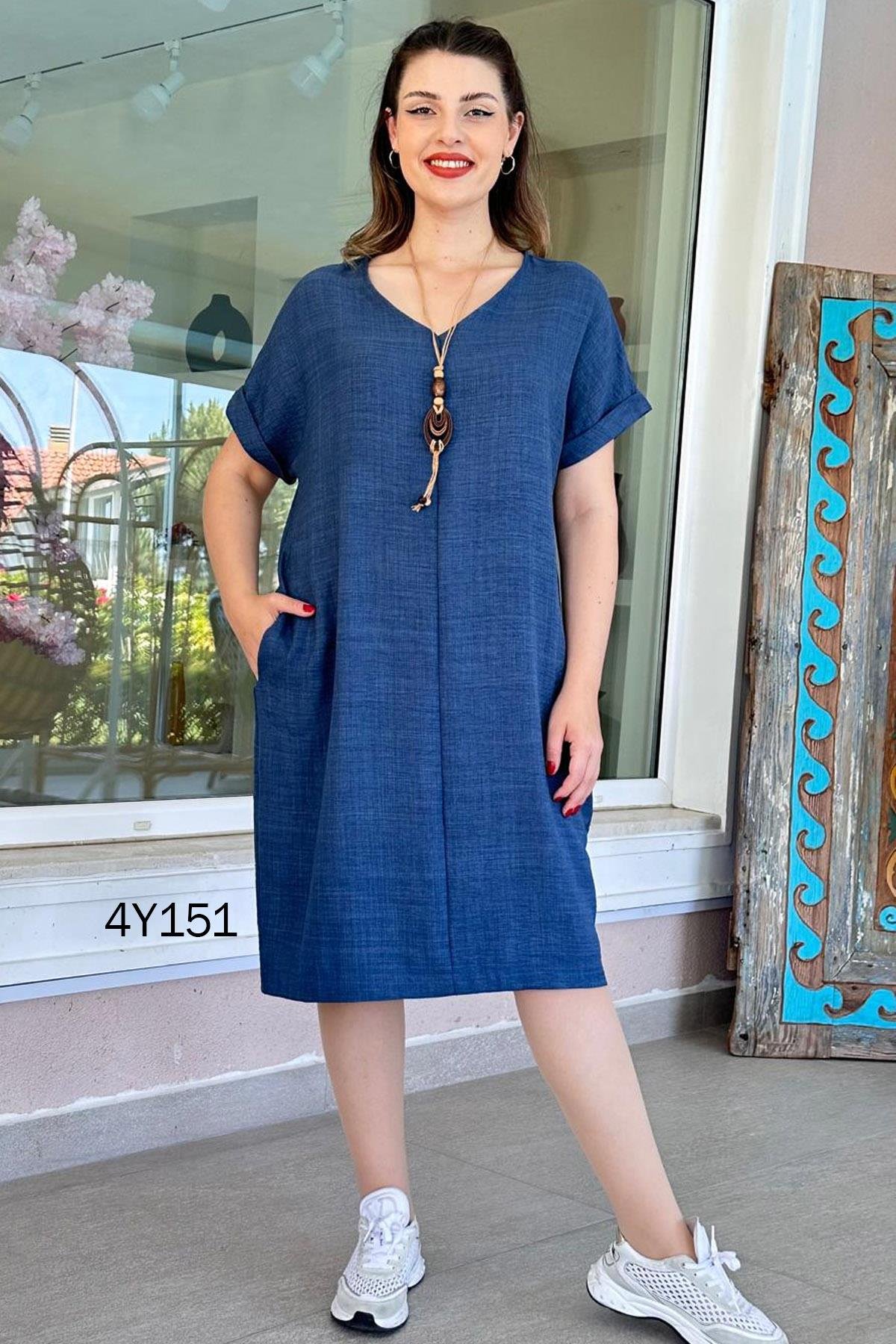 V YAKA KETEN AEROBİN KOLYELİ ELBİSE OMUZDAN AŞAĞI 104 CM
