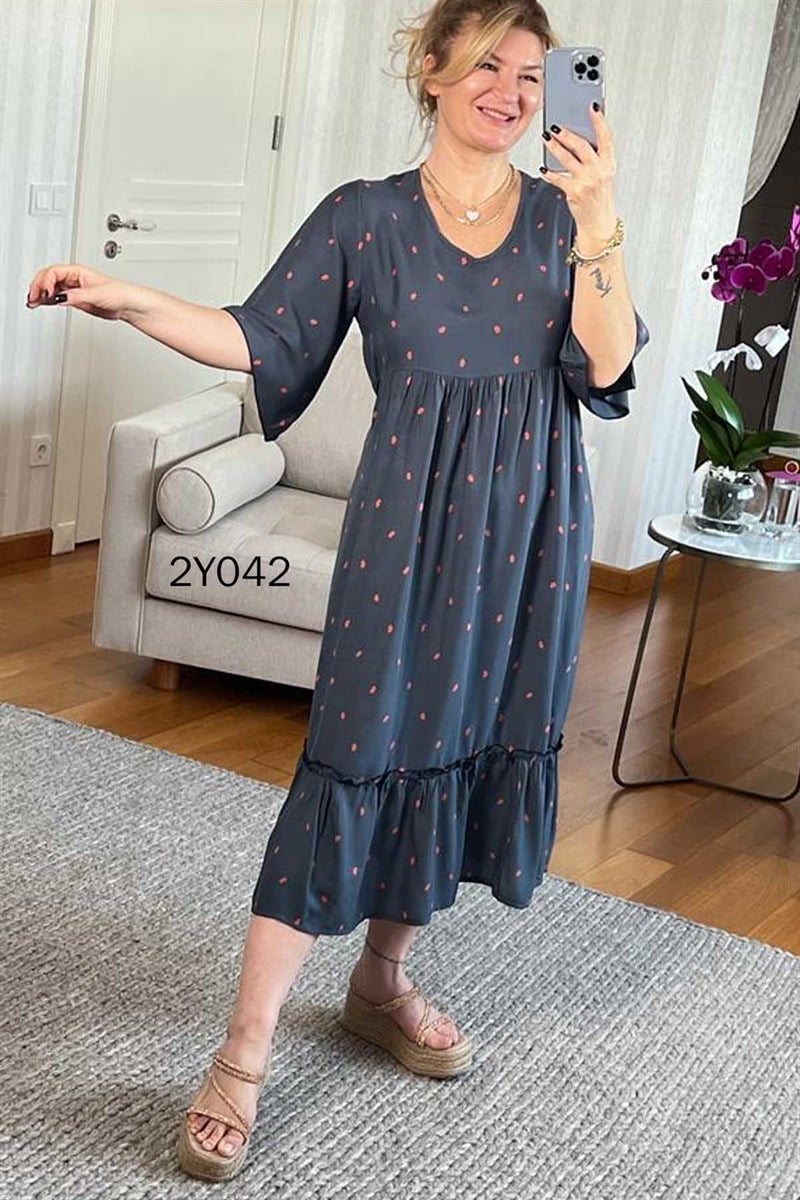V YAKA KISA KOL BELDEN BAĞLAMALI ELBİSE 115 CM