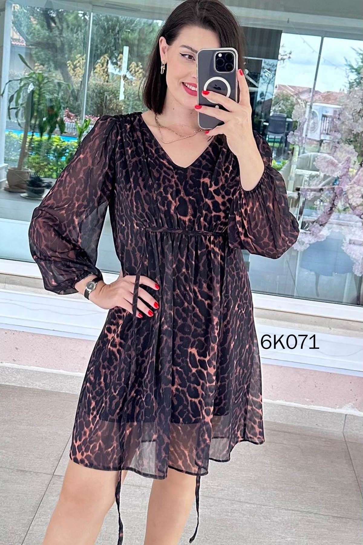 V YAKA MULTİ ŞİFON ELBİSE OMUZDAN AŞAĞI 93 CM