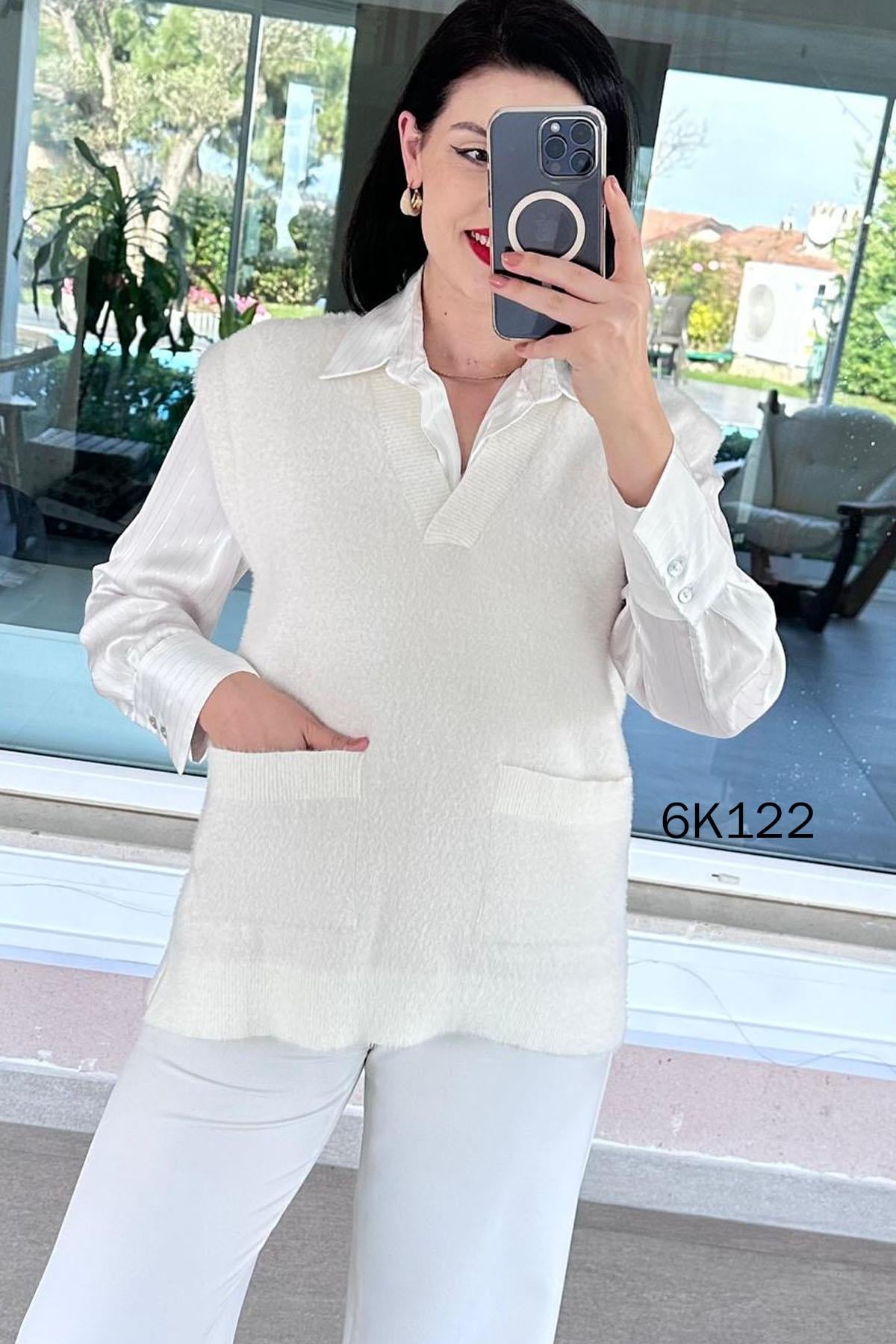 V Yaka Sakallı Triko Yelek (6K1222909036)