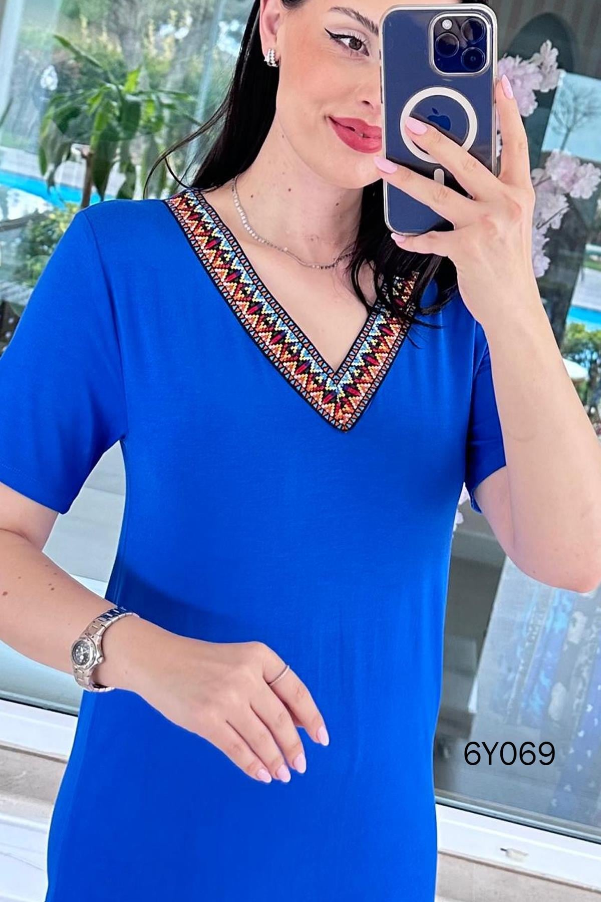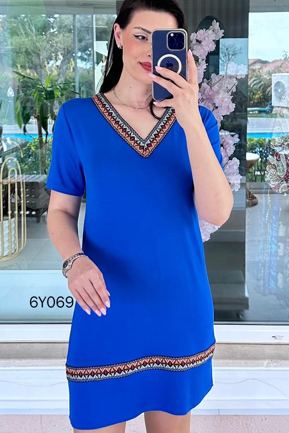 V Yaka Şeritli Viskon Elbise (6Y0691192019)