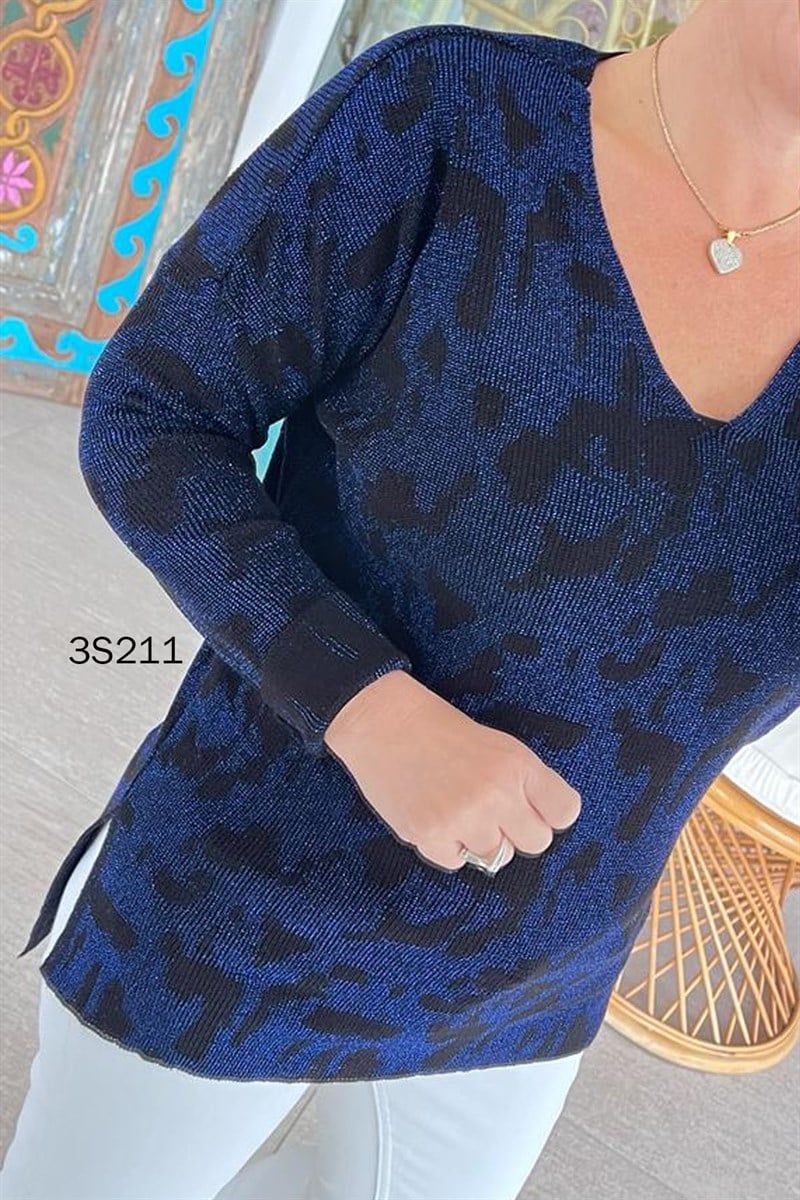 V Yaka Simli Triko Bluz