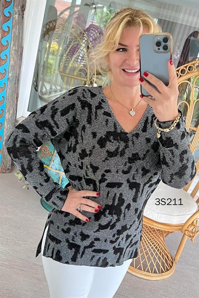 V YAKA SİMLİ TRİKO BLUZ OMUZDAN AŞAĞI ÖN 67 CM ARKA 73 CM