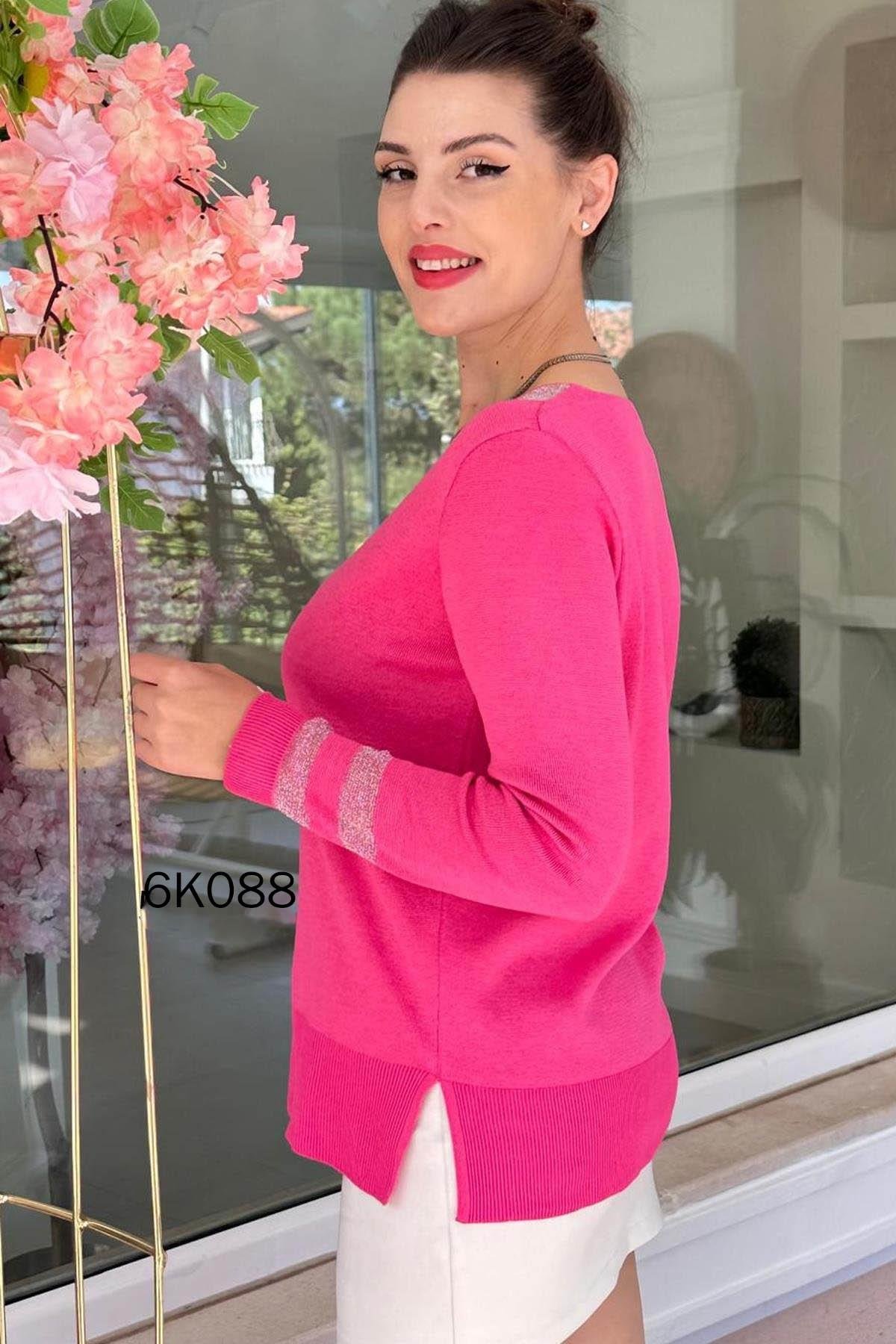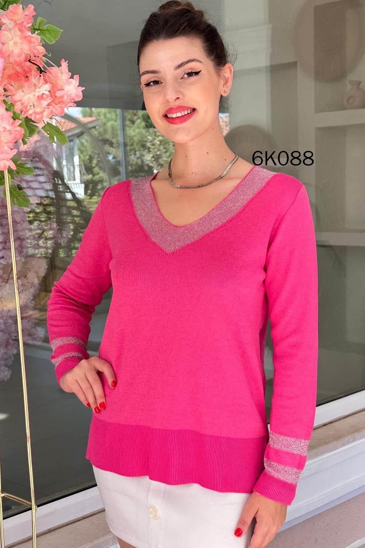 V Yaka Simli Triko Bluz