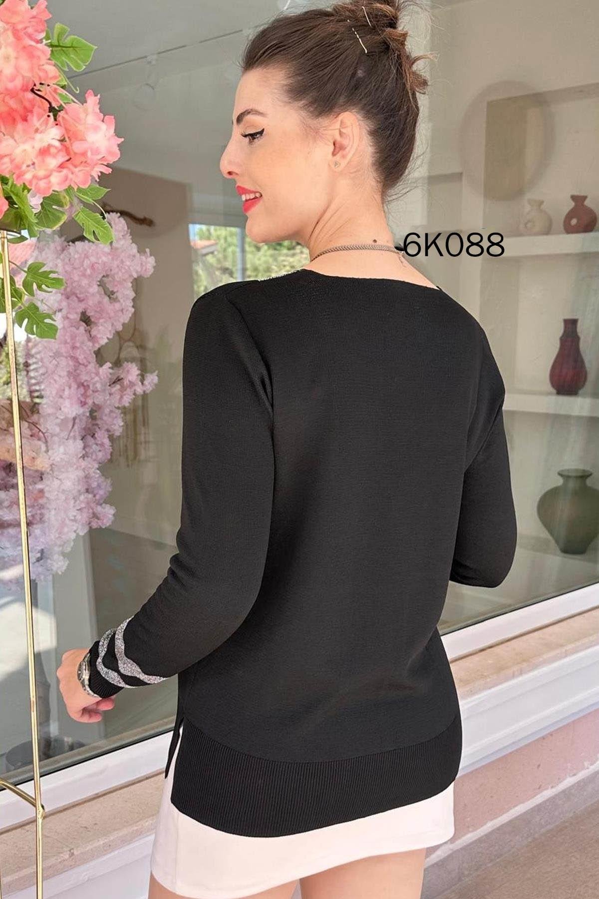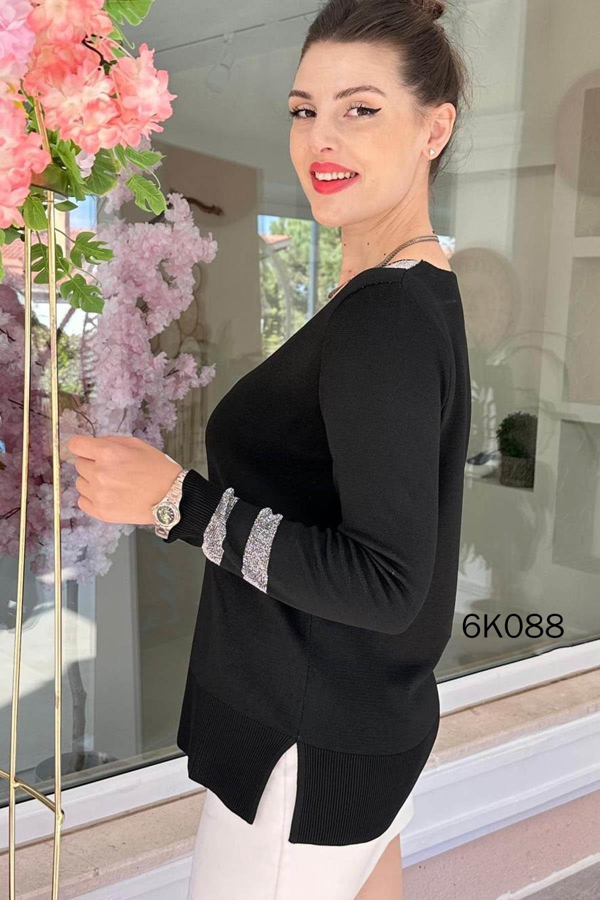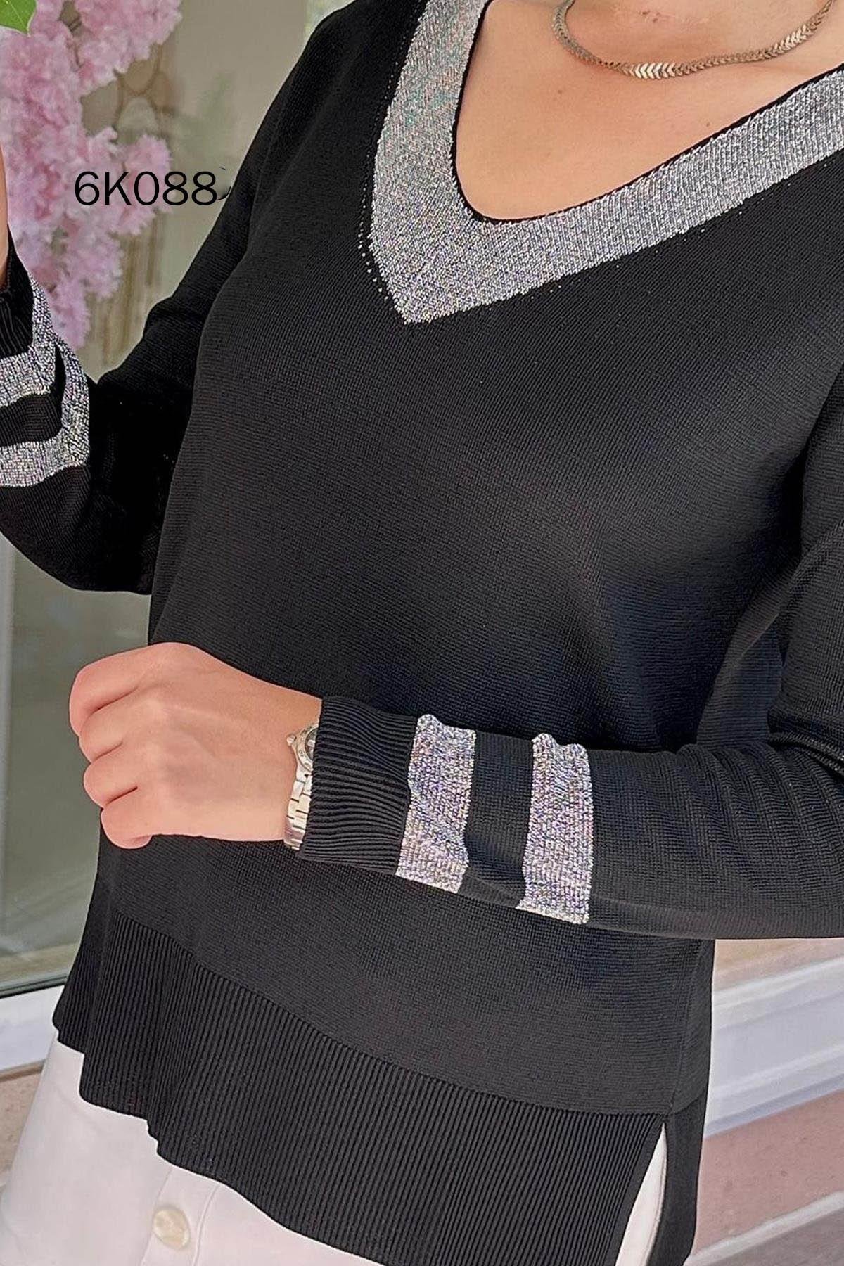 V YAKA SİMLİ TRİKO BLUZ OMUZDAN AŞAĞI 70 CM Ürünümüz trikodur. Full likralı, standart bedendir. 38-46 beden arası tavsiye edilir.