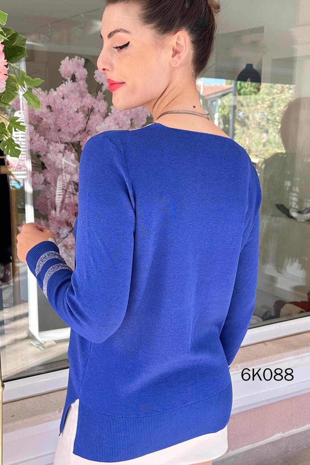 V YAKA SİMLİ TRİKO BLUZ OMUZDAN AŞAĞI 70 CM Ürünümüz trikodur. Full likralı, standart bedendir. 38-46 beden arası tavsiye edilir.