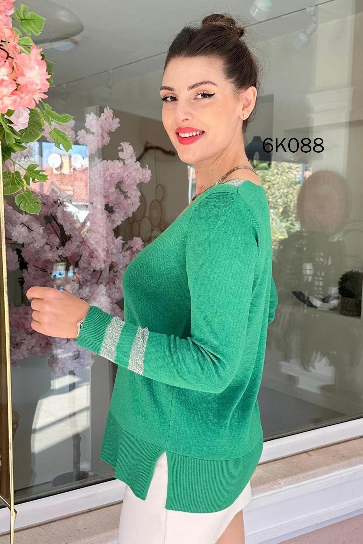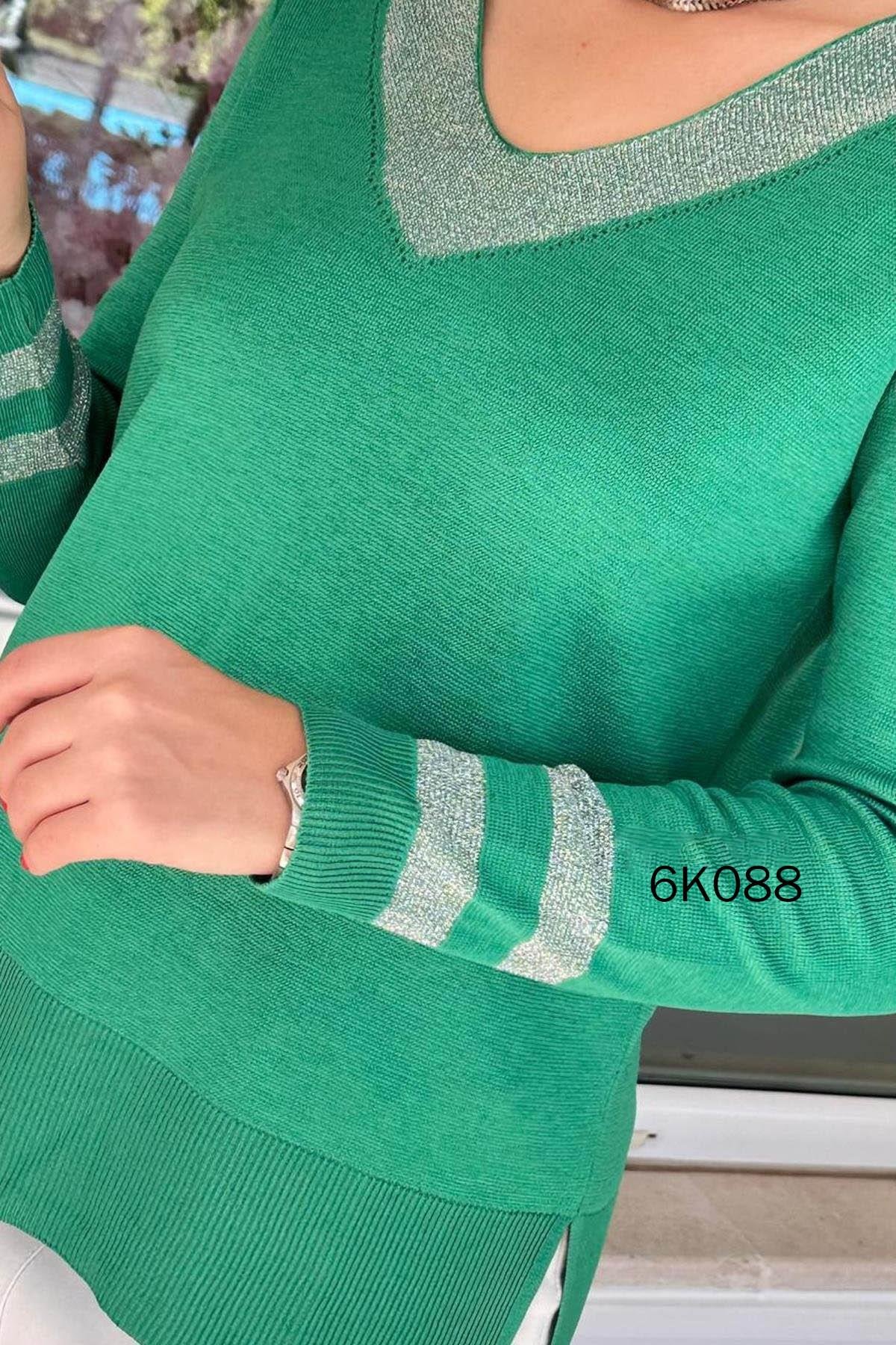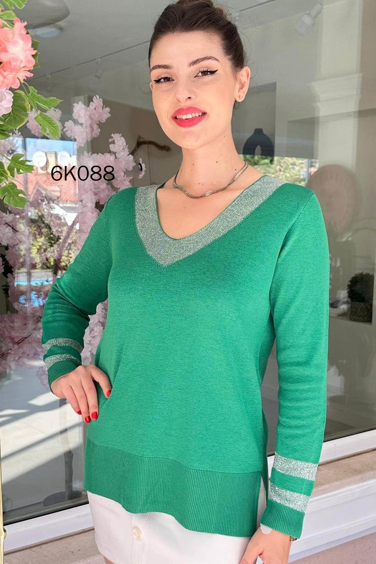 V Yaka Simli Triko Bluz