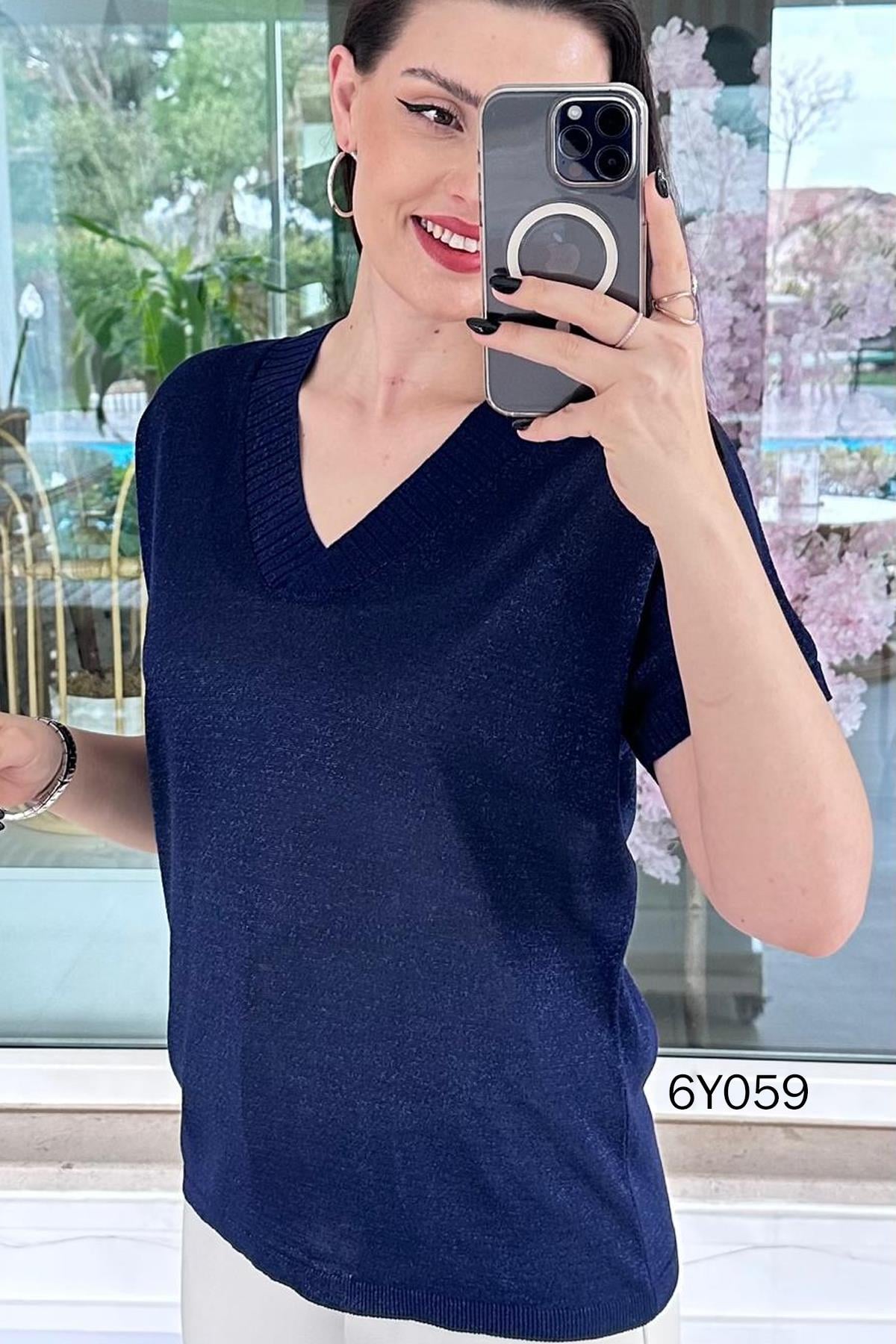 V Yaka Simli Triko Bluz (6Y0592947A20)