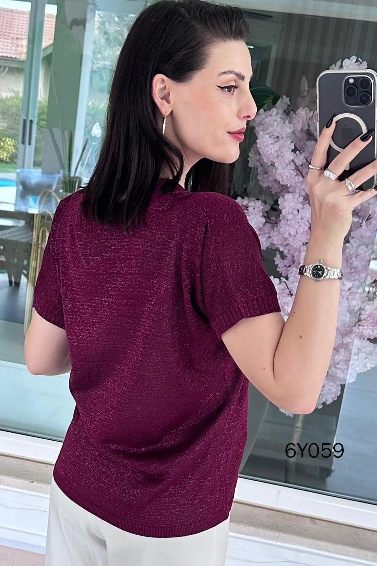 V Yaka Simli Triko Bluz (6Y0592947096)