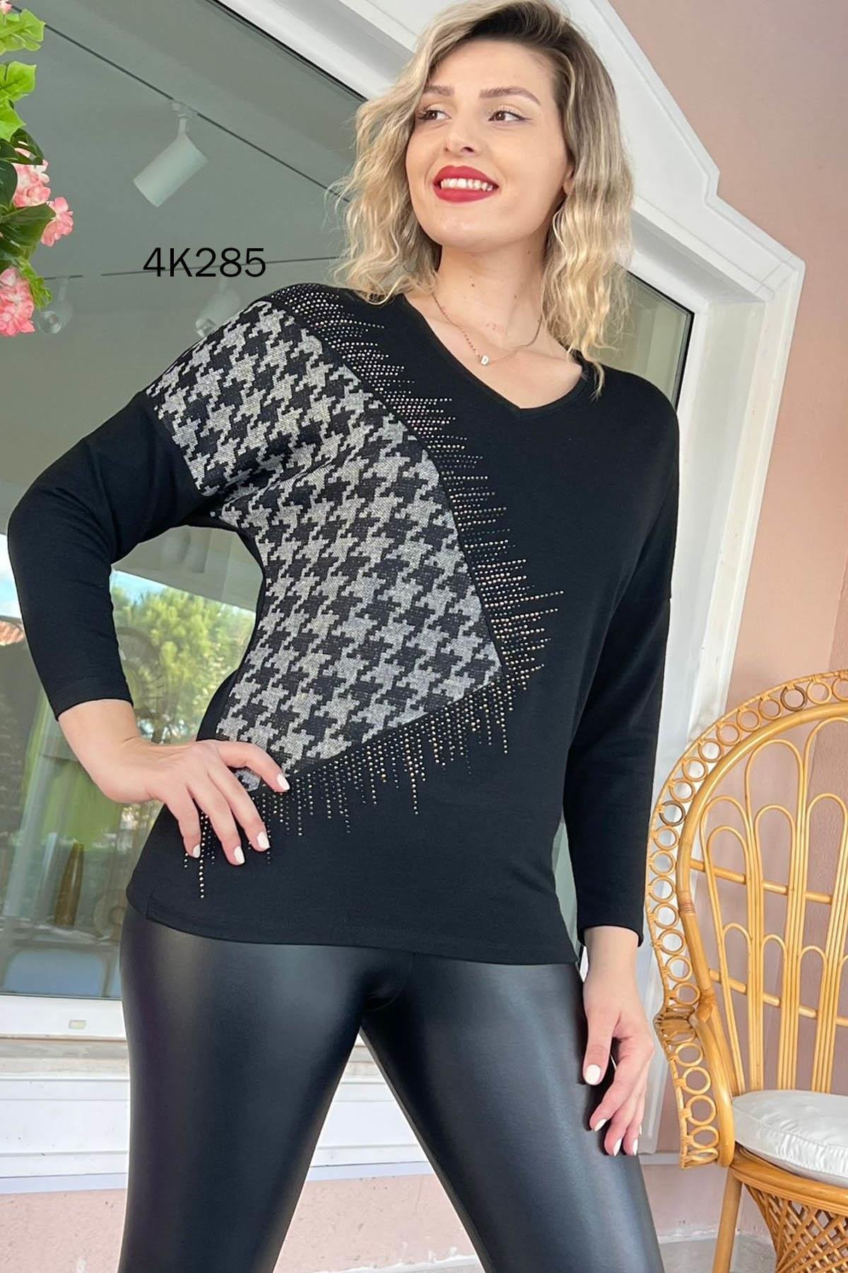 V YAKA TAŞ DETAY GARNİLİ ÇİLEK BLUZ OMUZDAN AŞAĞI 67 CM