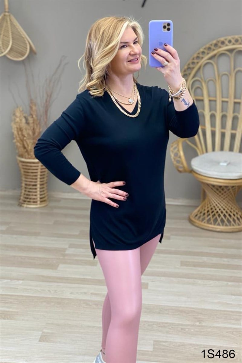 V YAKA TRİKO BLUZ OMUZDAN AŞAĞI ÖN 73CM ARKA 76 CM