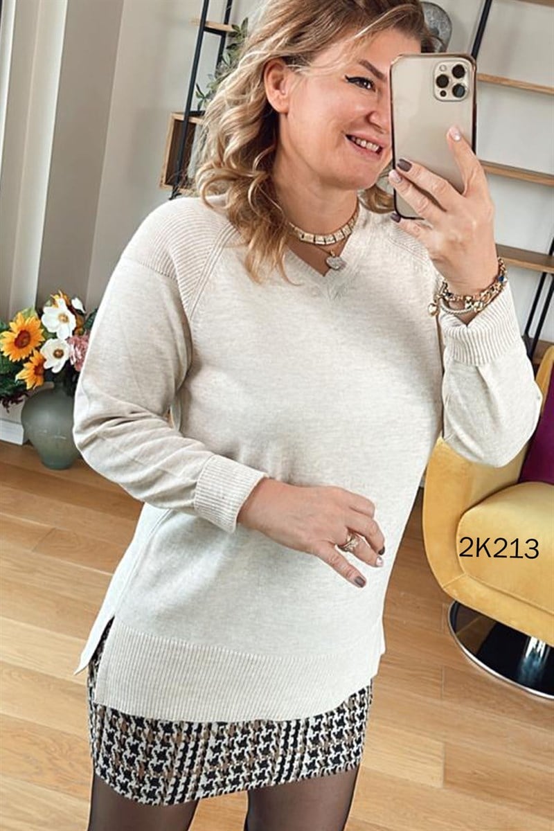 V YAKA TRİKO BLUZ OMUZDAN AŞAĞI 70 CM