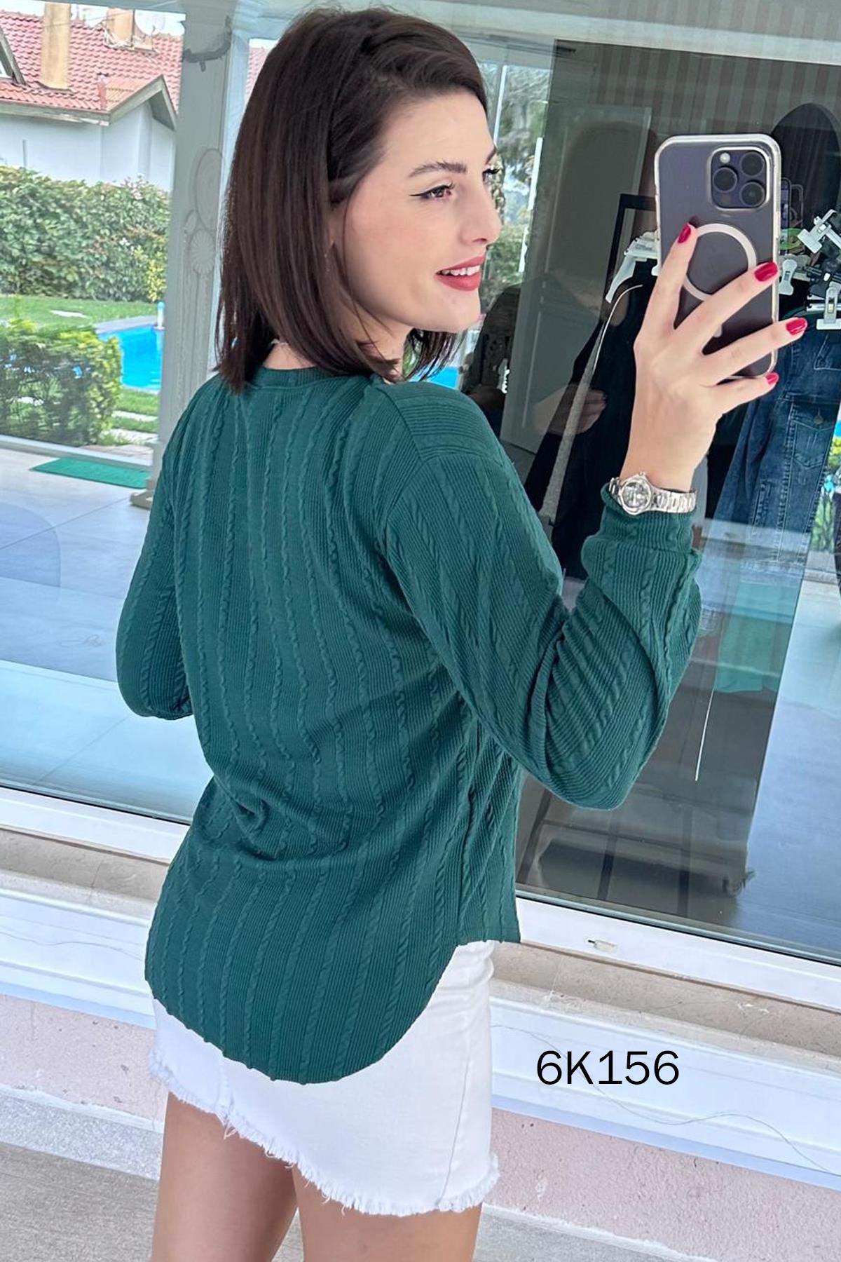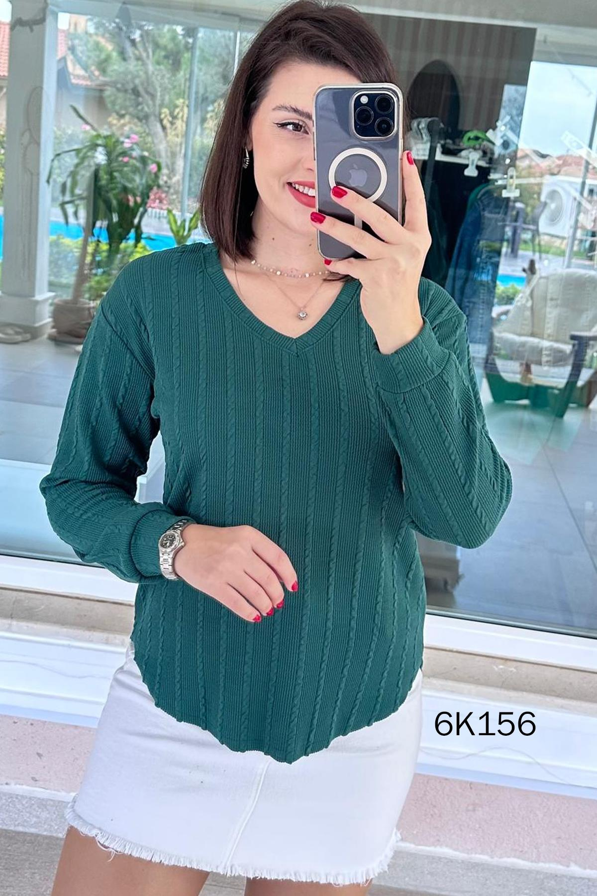 V YAKA VERONİCA TRİKO BLUZ OMUZDAN AŞAĞI ÖN 64 CM ARKA 74 CM