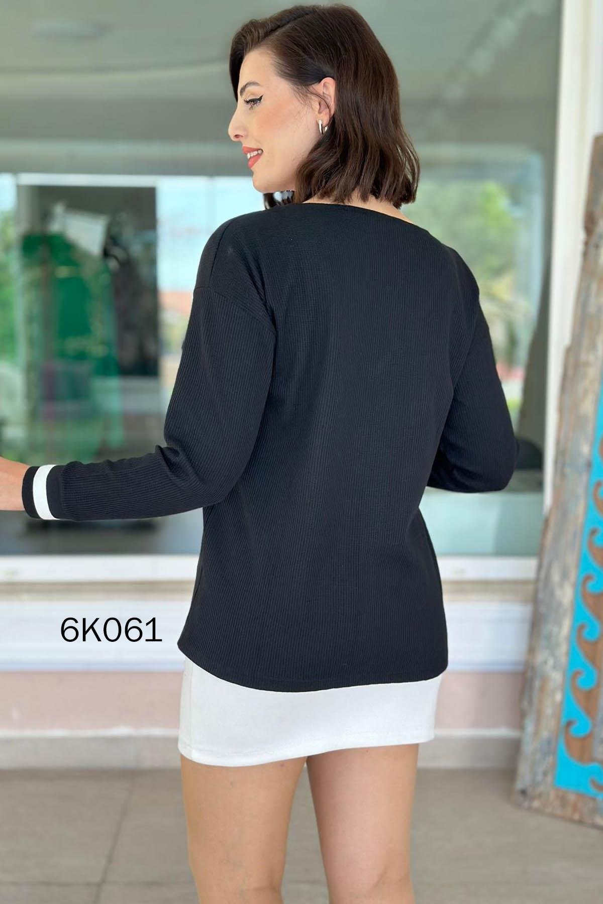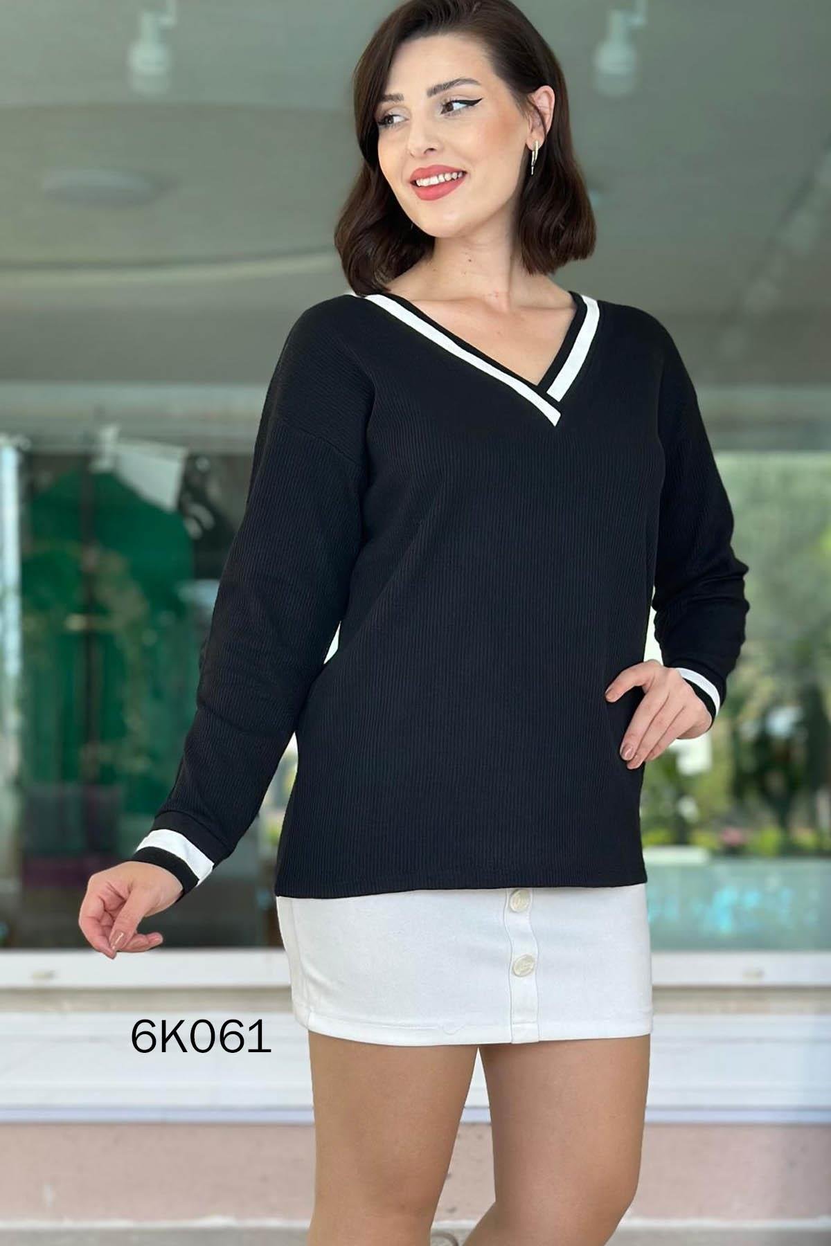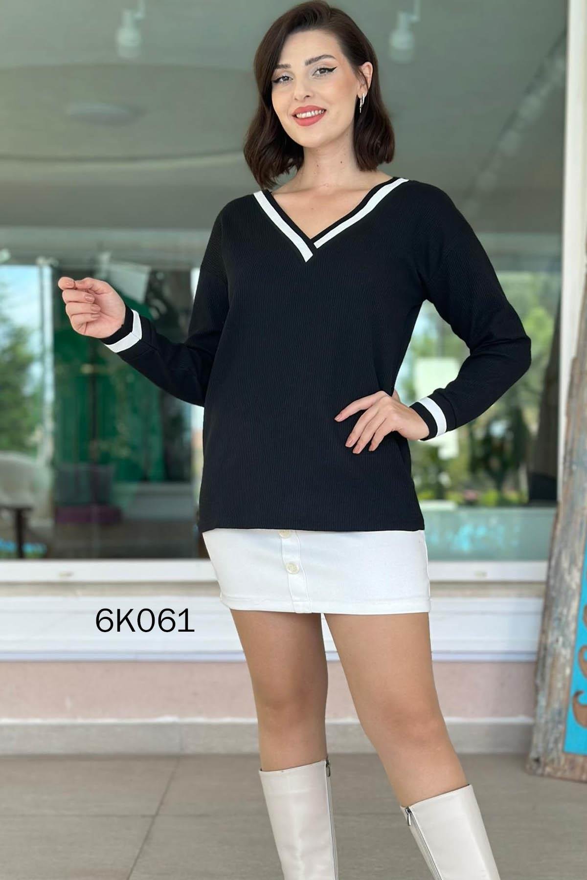V YAKA WAFFLE KUMAŞ BLUZ OMUZDAN AŞAĞI 68 CM